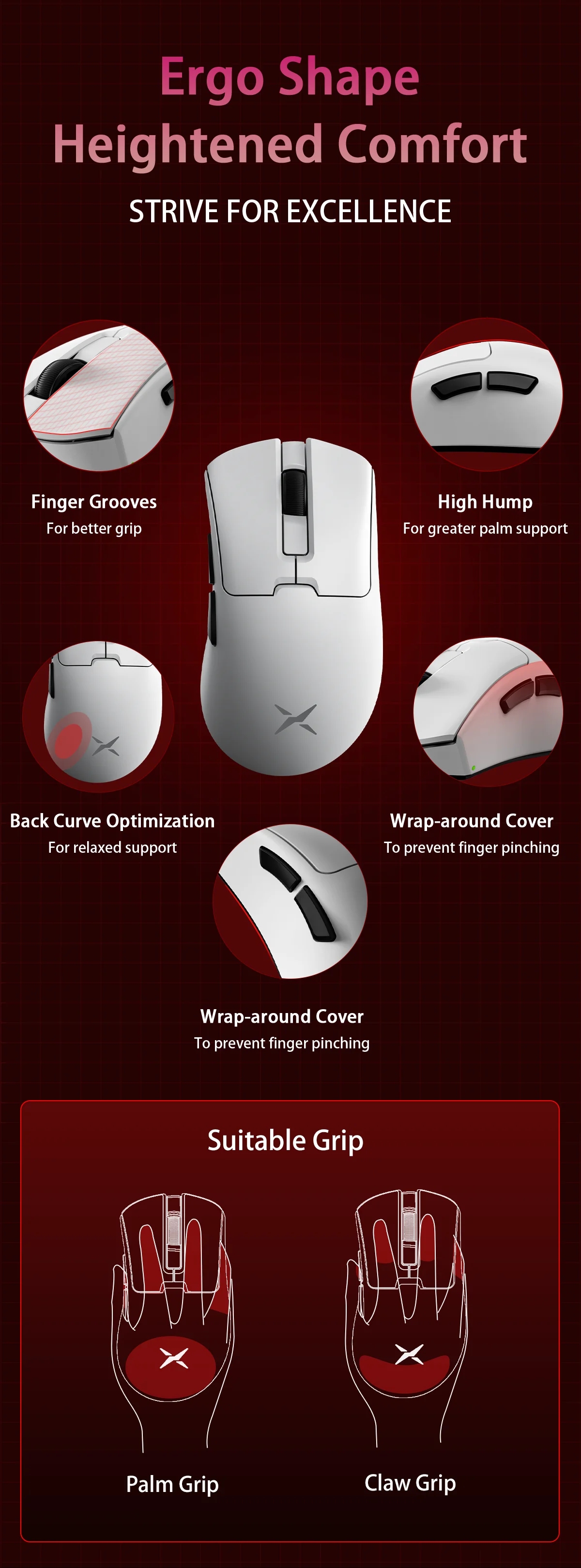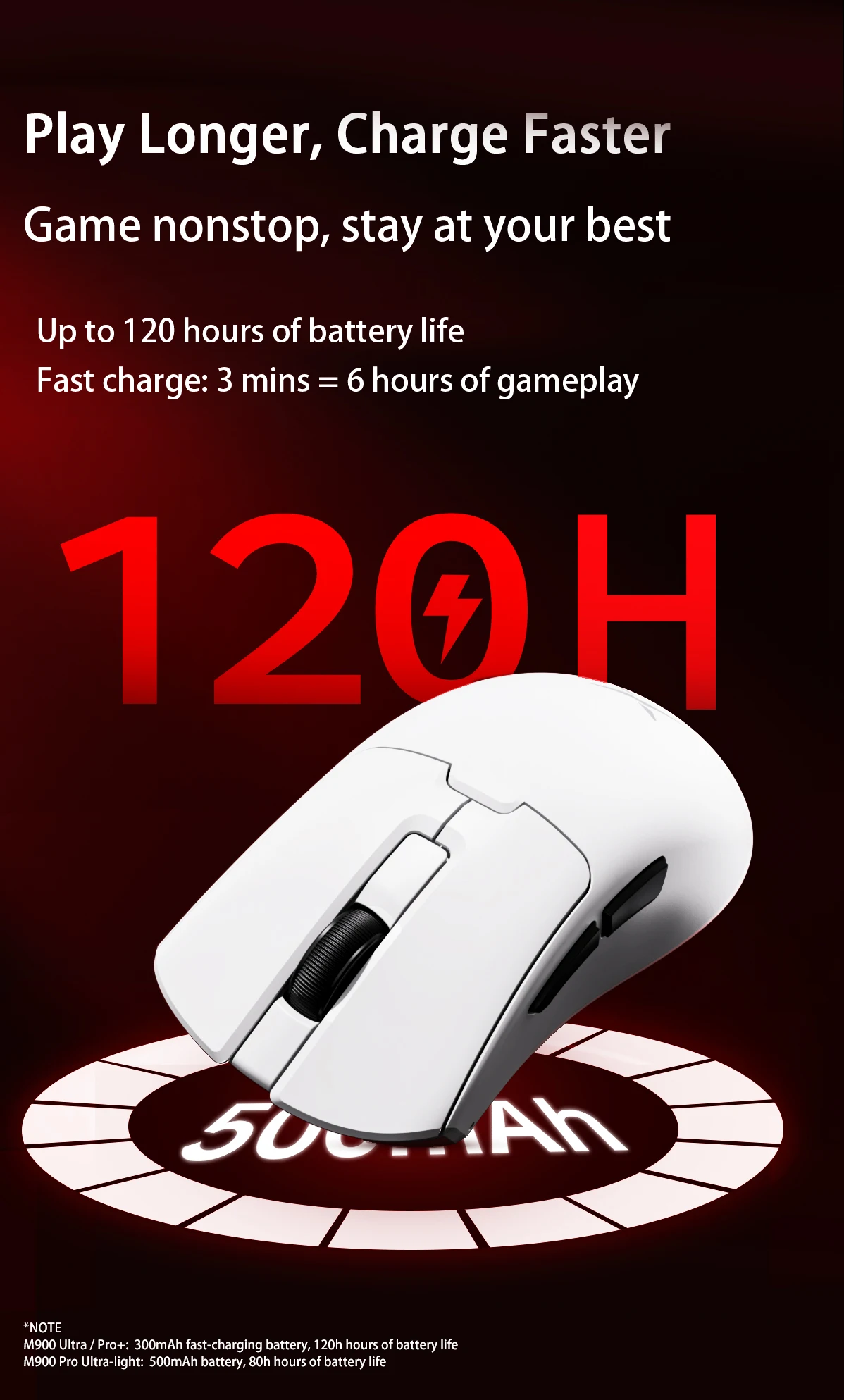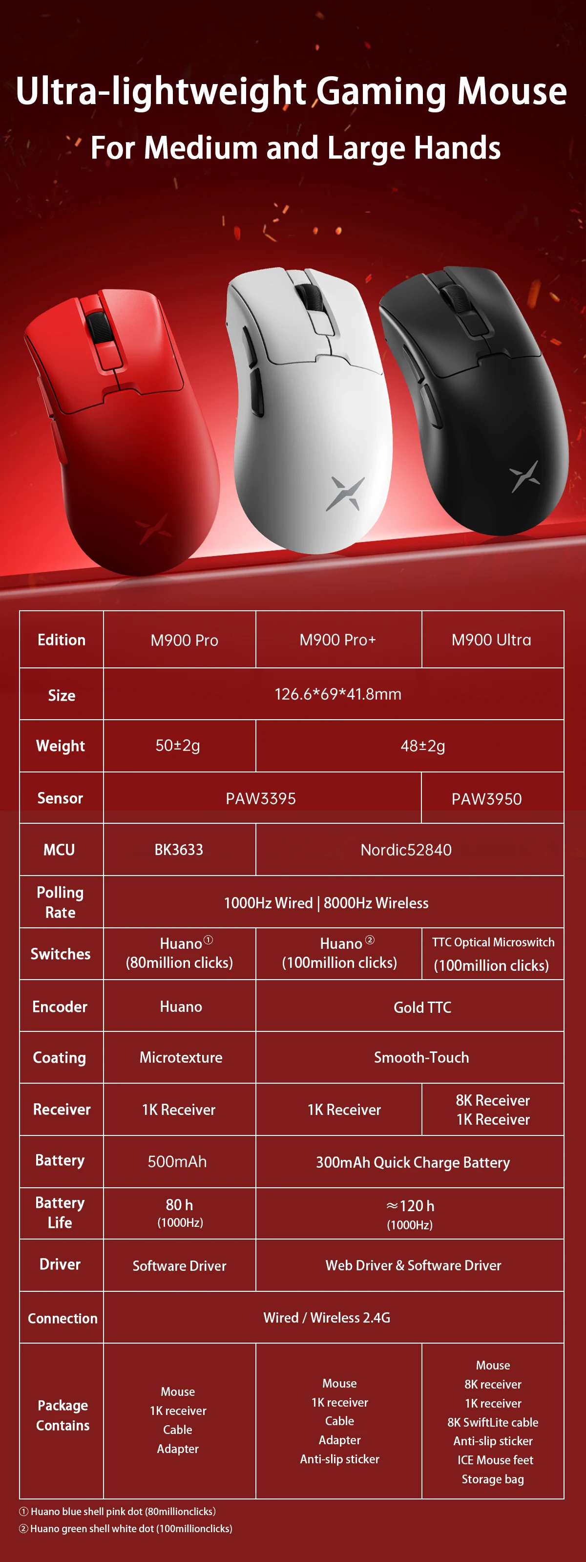 - > Delux m900pro versão ultraleve mouse para jogos sem fio ergonômico 1k/8k taxa de pesquisa 50g paw3395 para mão direita grande pc laptop