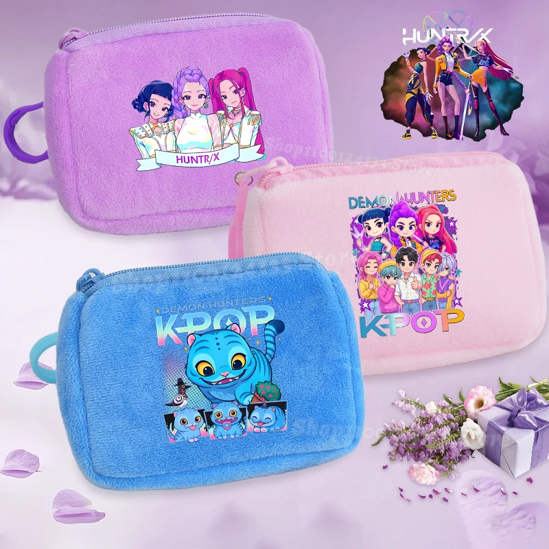 Demone hunter crianças menina plushd moeda bolsa bonito anime y2k kawaii carteiras portáteis mulher chave cartão de banco mini sacos festa jogo presente