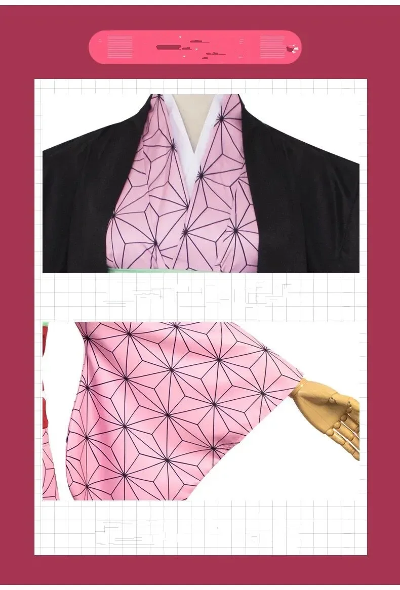 Demônio slayer kamado nezuko cosplay traje de halloween roupas de festa anime kimetsu não yaiba roupa peruca sapatos conjunto