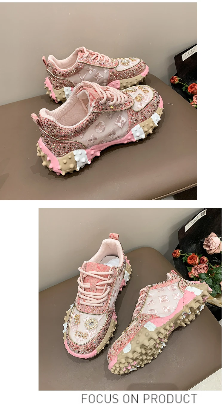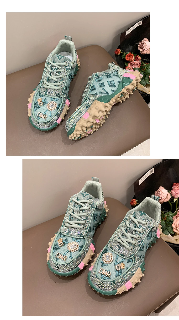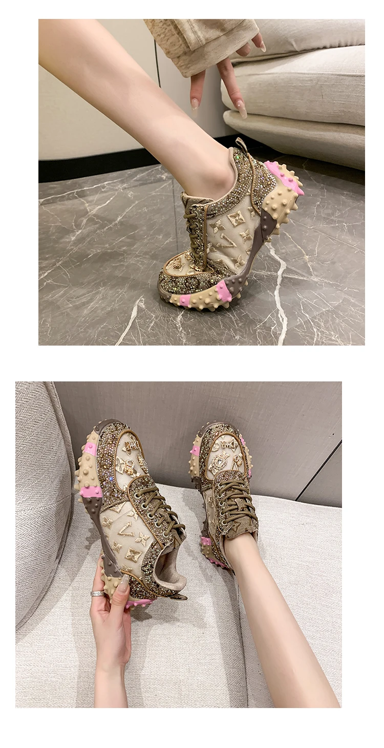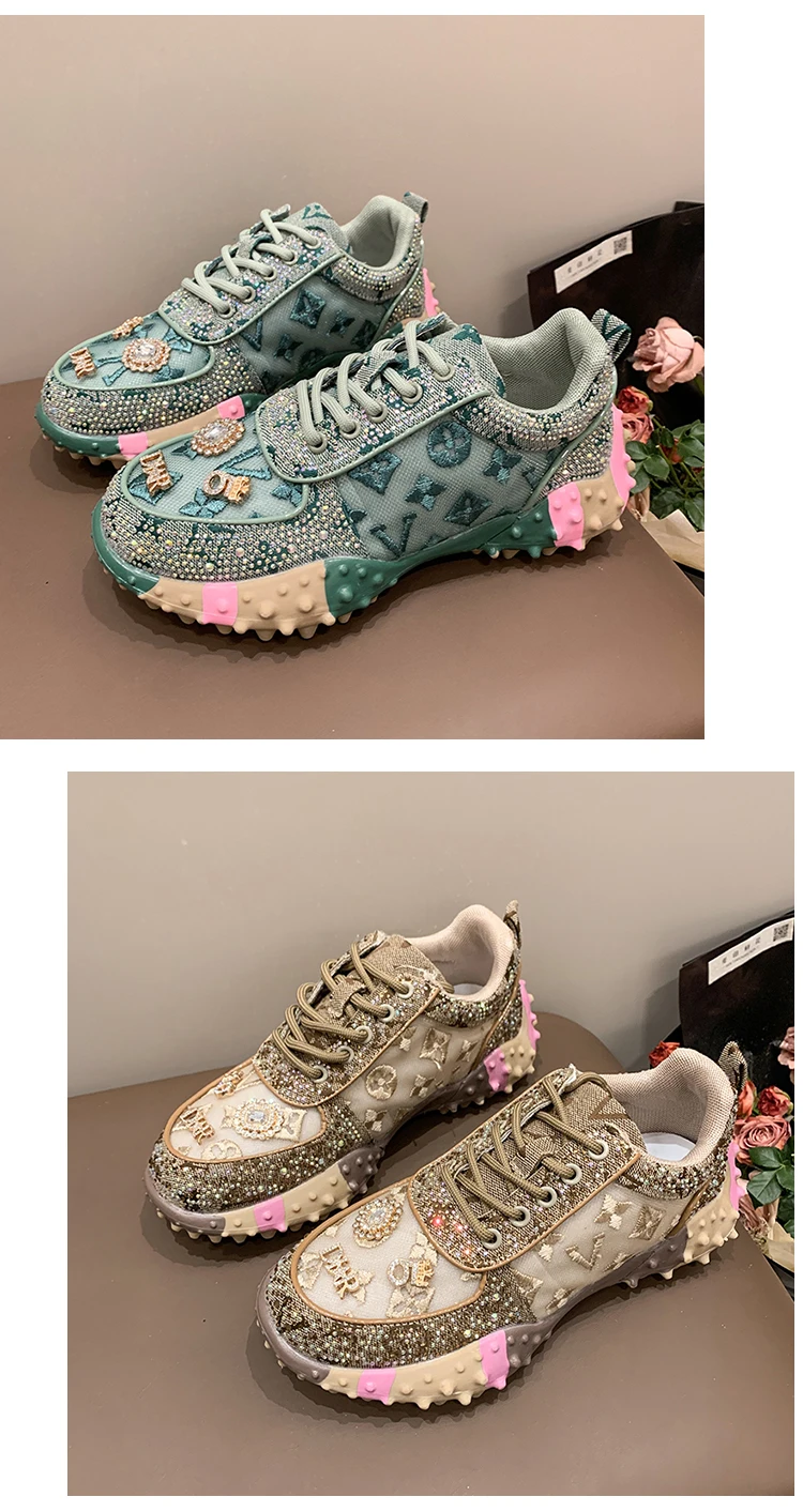 - > Designer de luxo tênis feminino moda luxo strass senhoras sapatos 2025 nova plataforma ao ar livre sapatos esportivos femininos vulcanizar