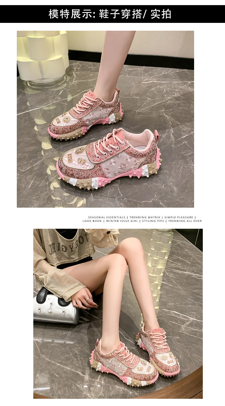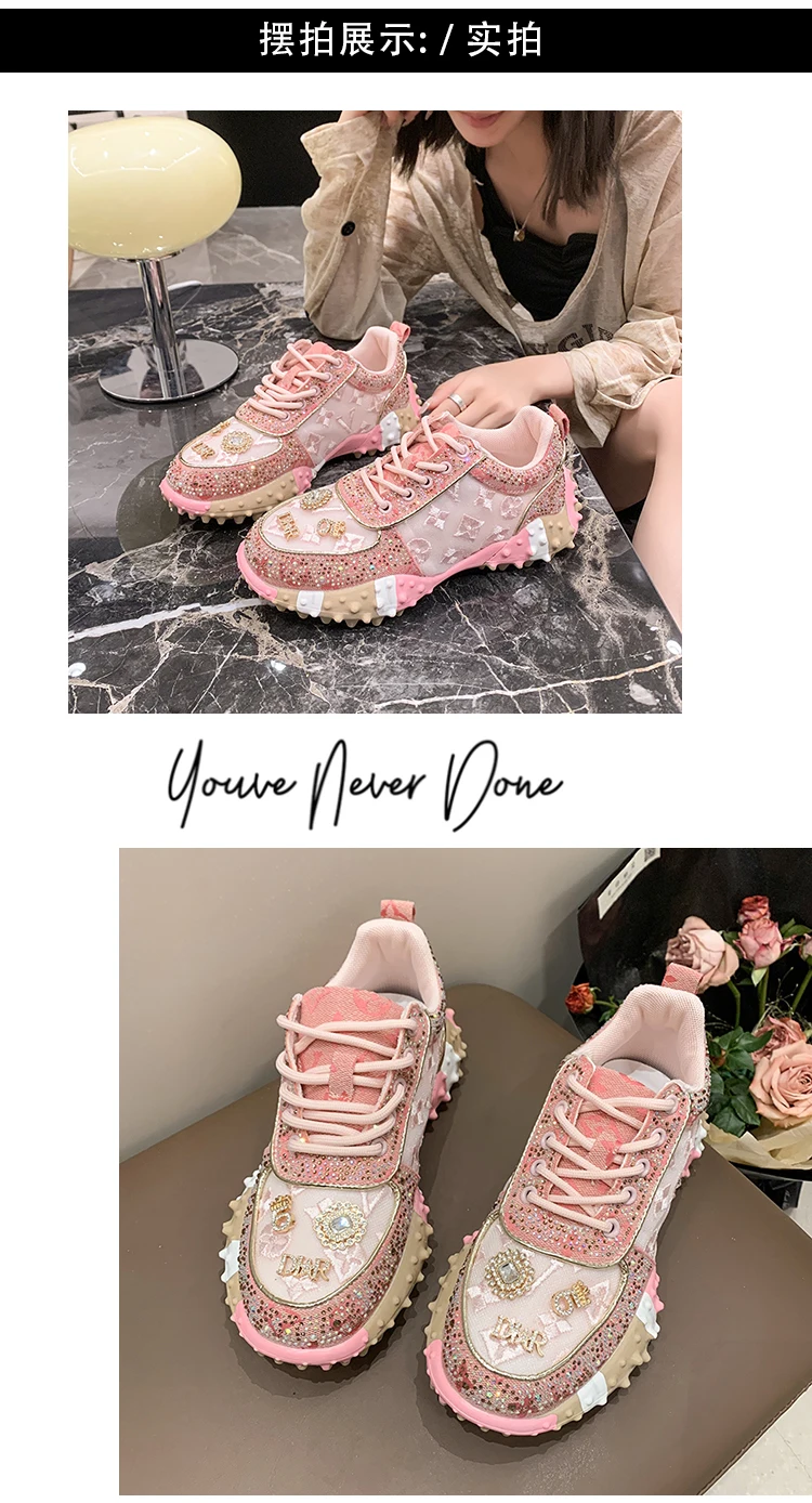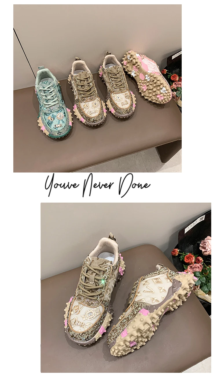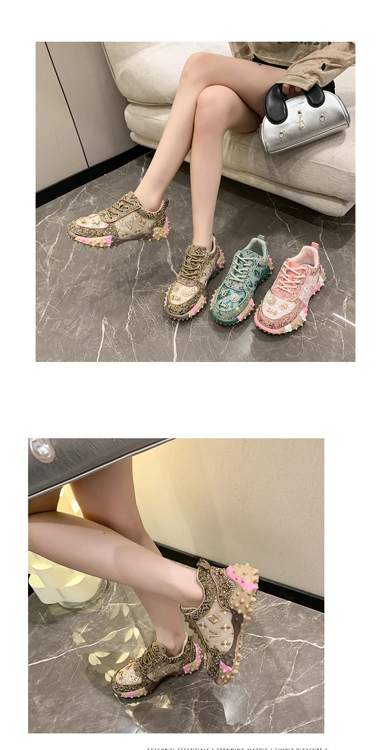 - > Designer de luxo tênis feminino moda luxo strass senhoras sapatos 2025 nova plataforma ao ar livre sapatos esportivos femininos vulcanizar