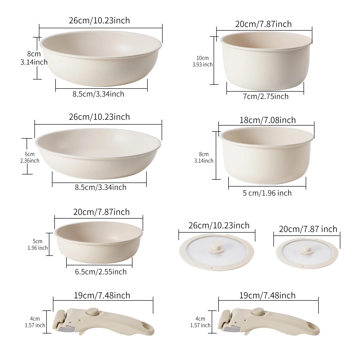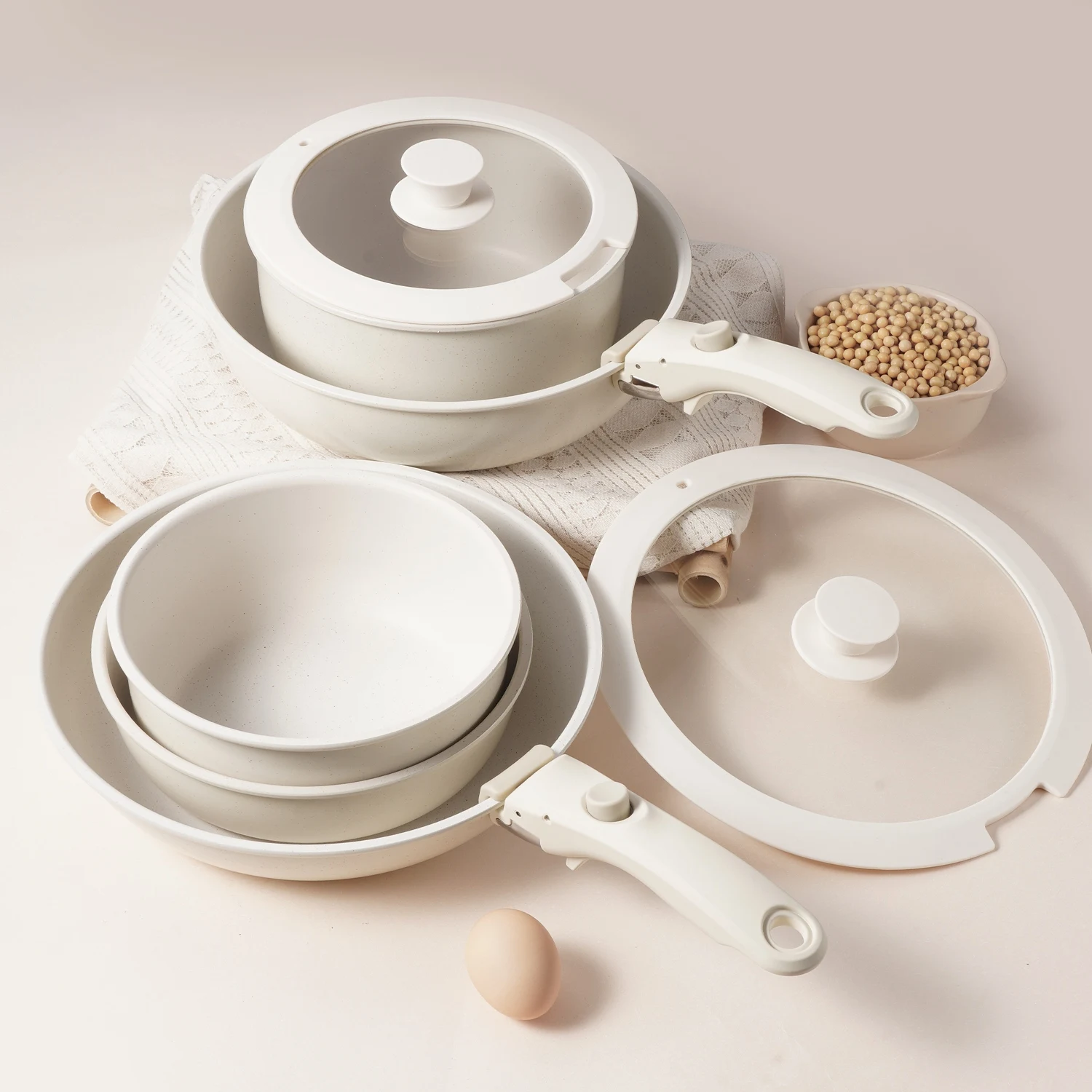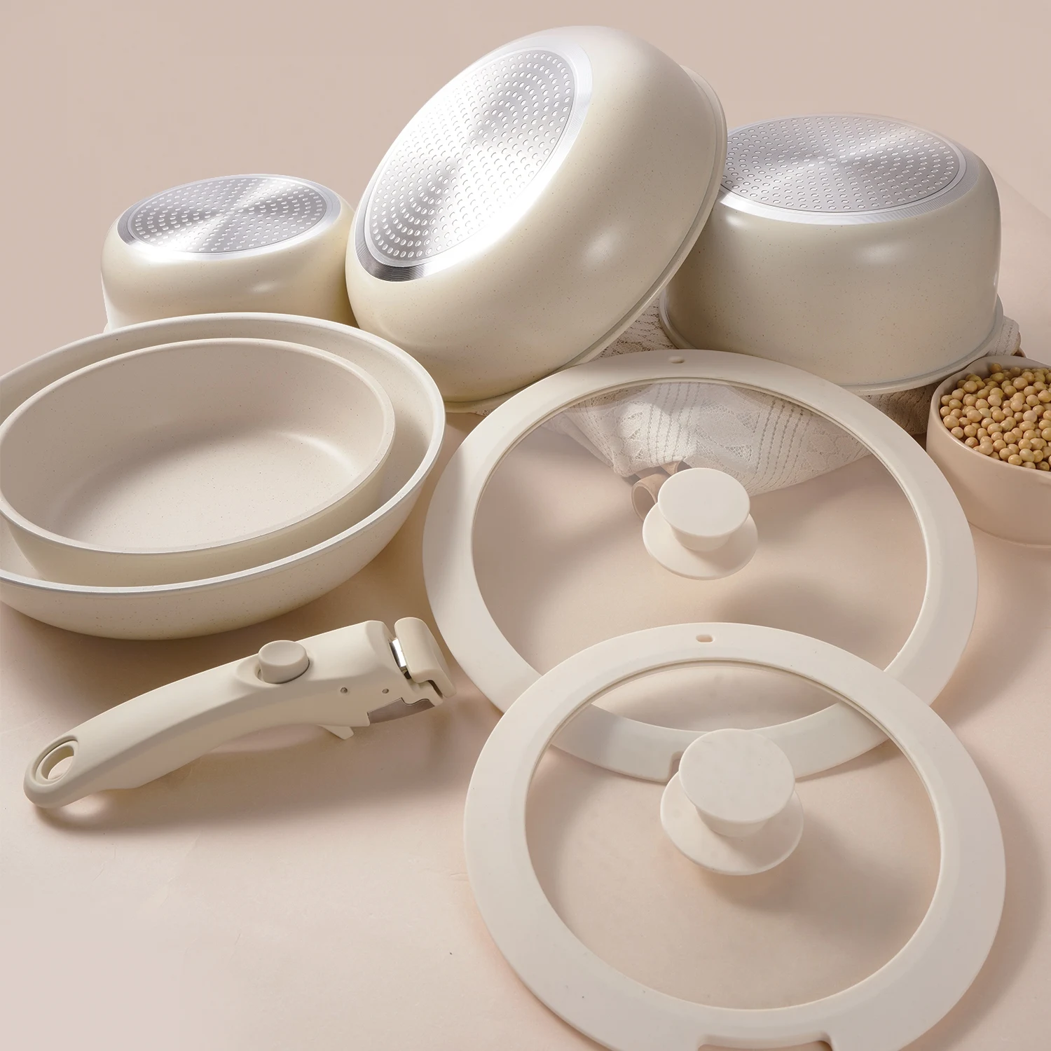 Destacável Kitchen Cookware Set, punho branco, se, 9 peças