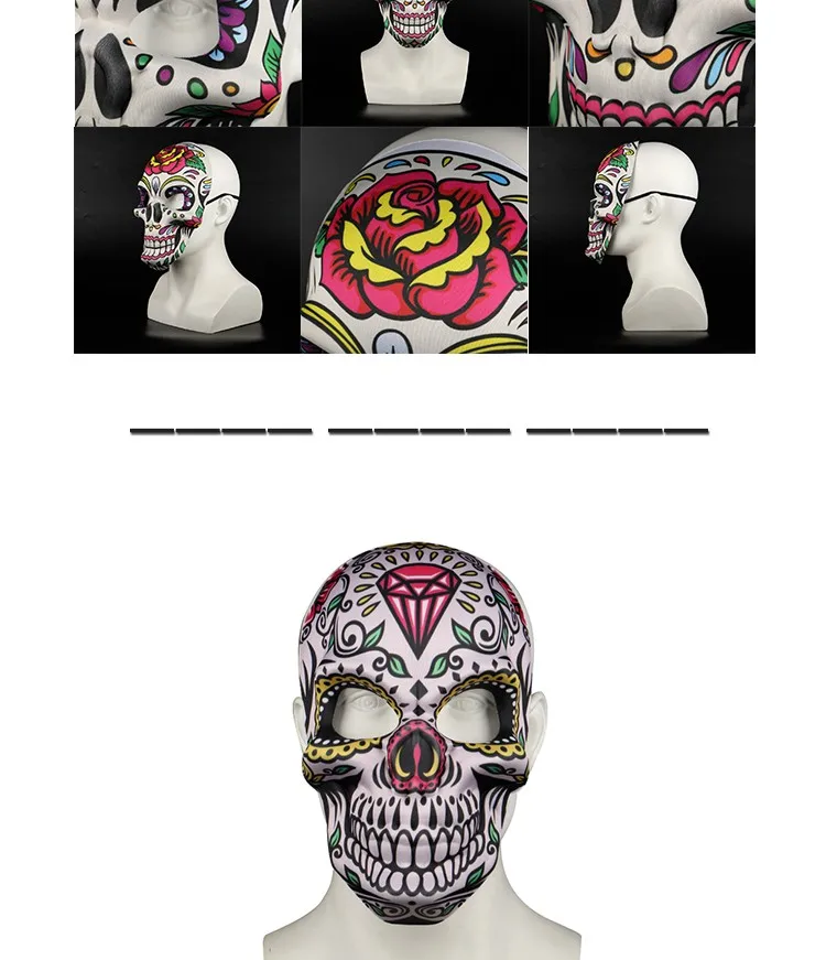 2024 Máscaras Máscara de Caveira Mexicana Dia dos Mortos Cosplay Halloween Esqueletos Máscaras de Impressão Dress Up Purim Party Costume Prop