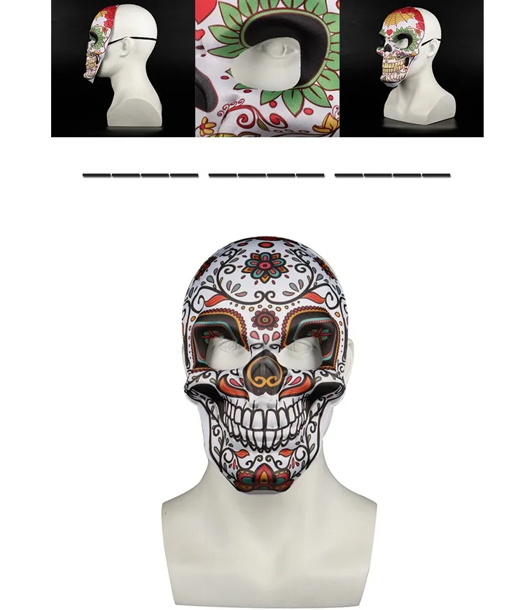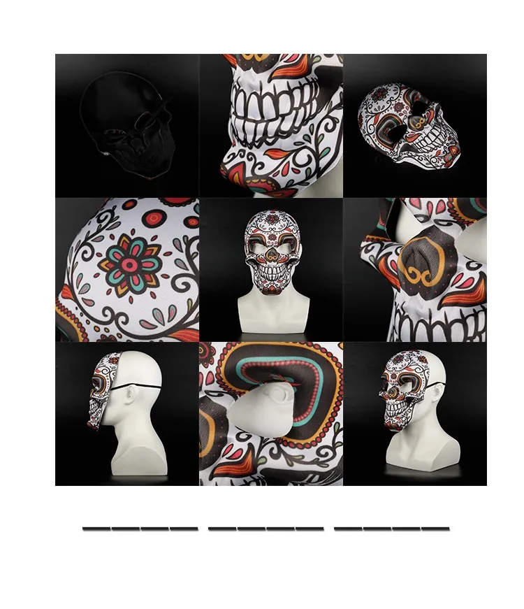 Dia dos Mortos Caveira Máscara, Esqueletos Imprimir, Vestir, Purim Party, Material de fantasia, Mexicana, Cosplay, 2022