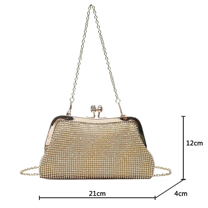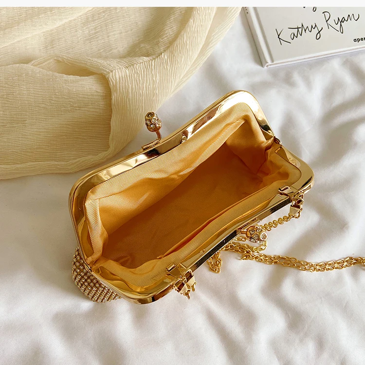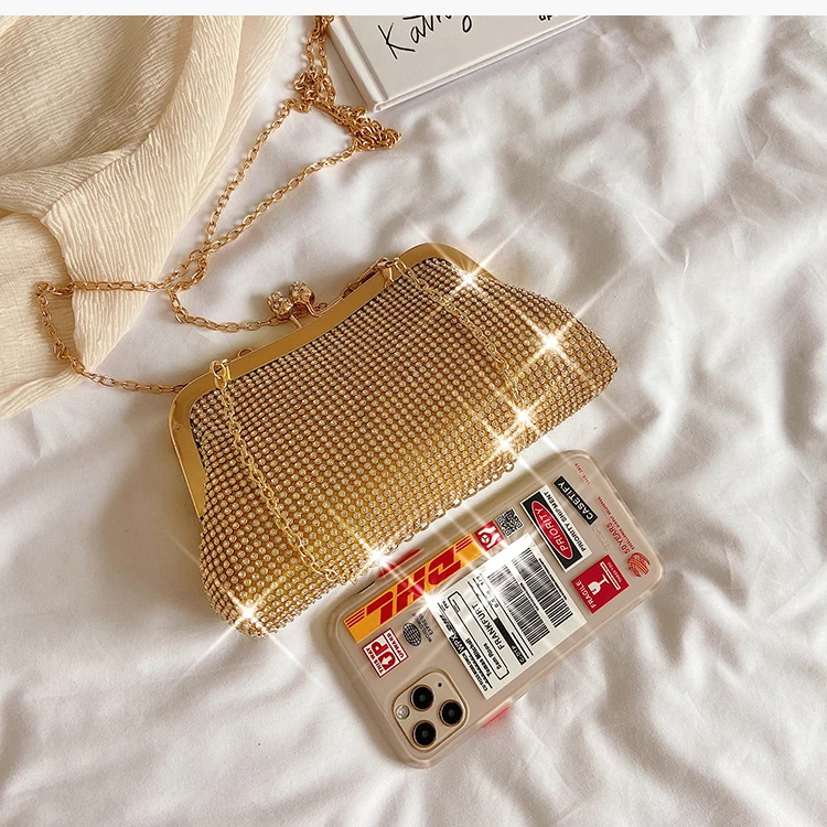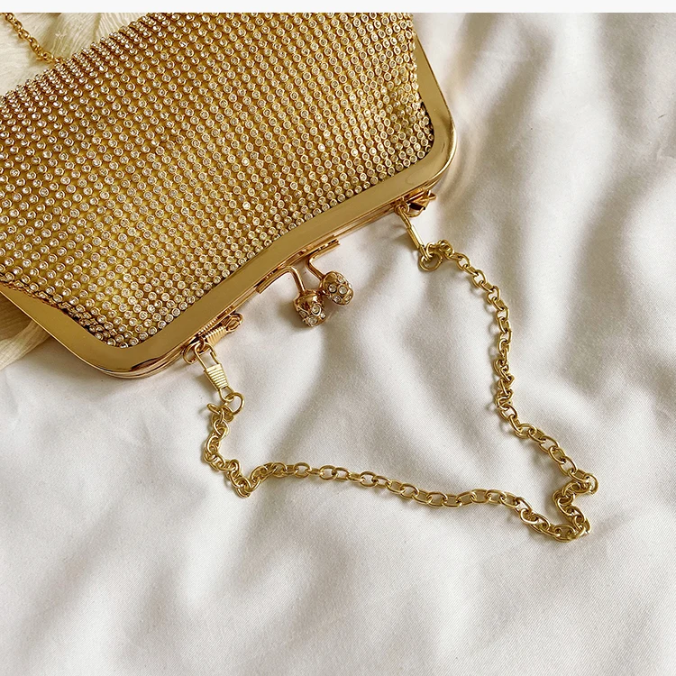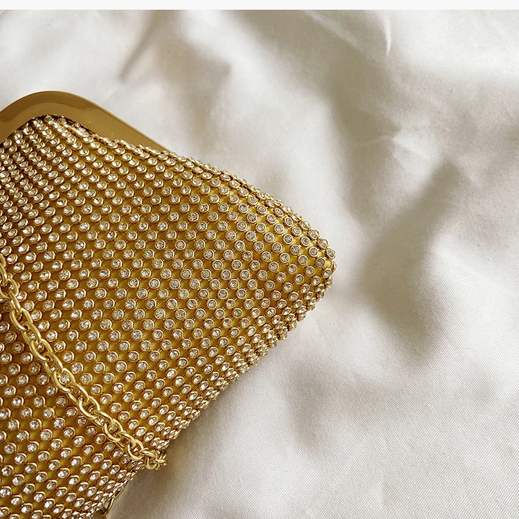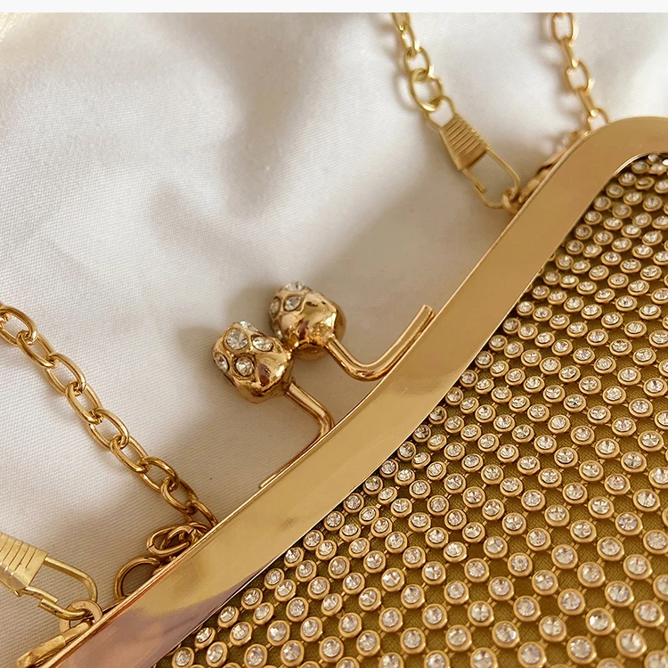 - > Diamante de ouro sacos de noite para mulheres, bolsa de luxo, corrente elegante, ombro crossbody bag, embreagem festa casamento, moda, 2024