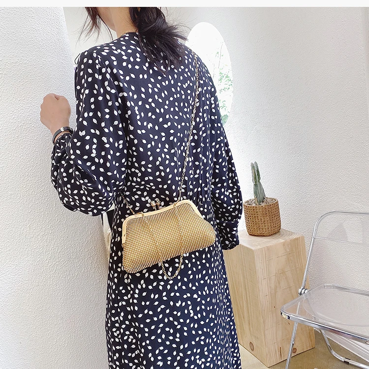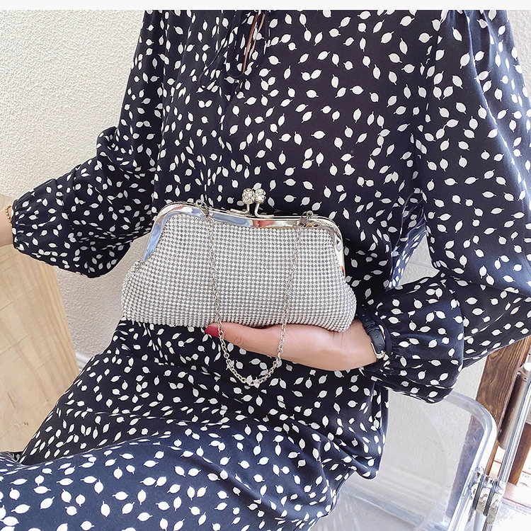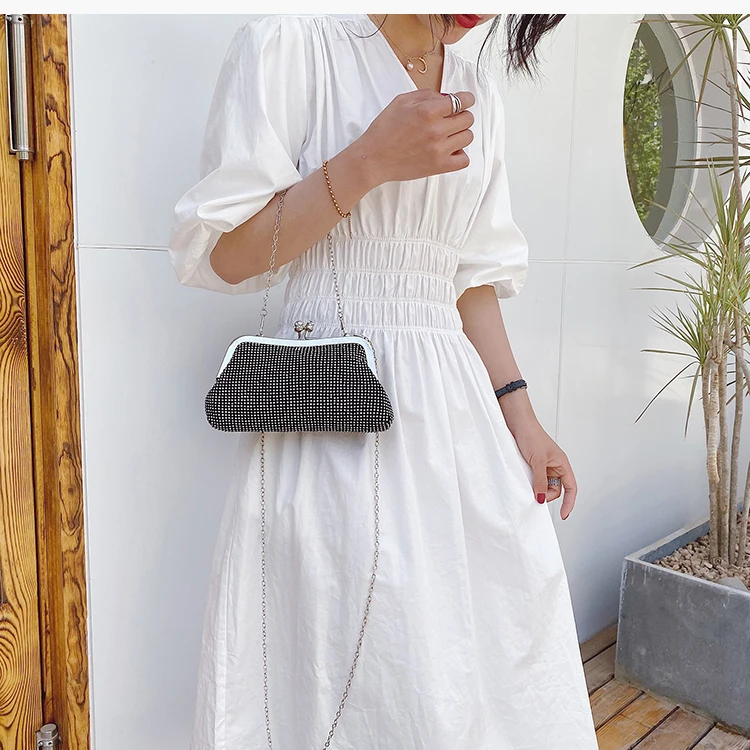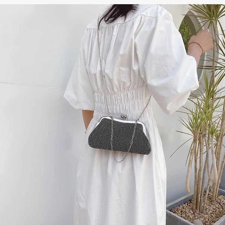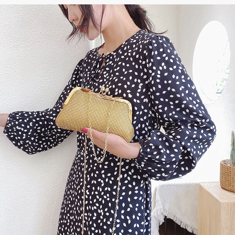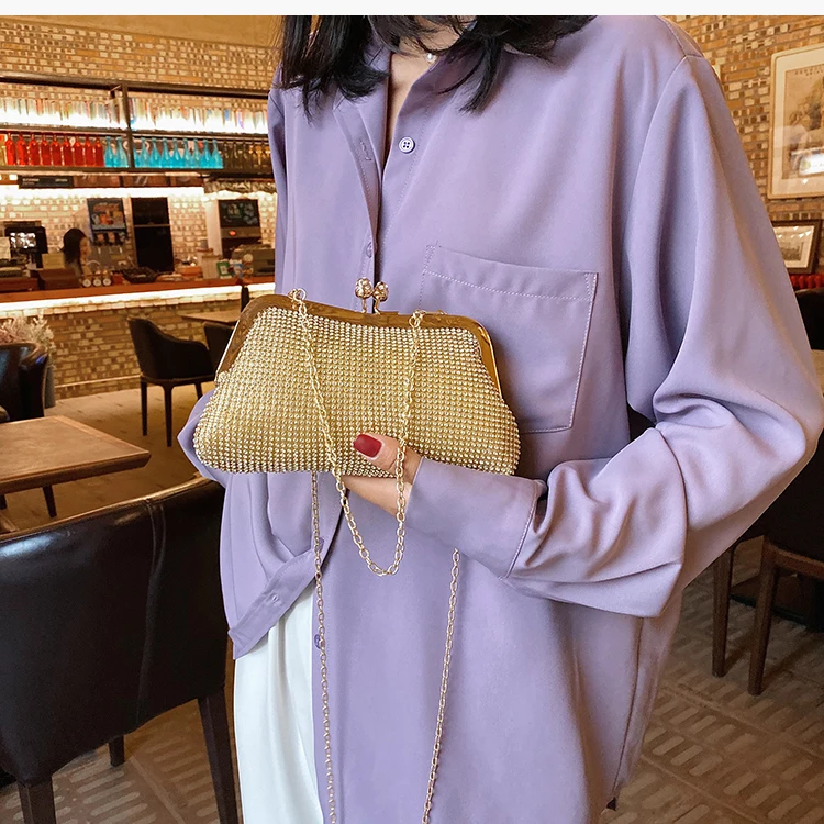 - > Diamante de ouro sacos de noite para mulheres, bolsa de luxo, corrente elegante, ombro crossbody bag, embreagem festa casamento, moda, 2024