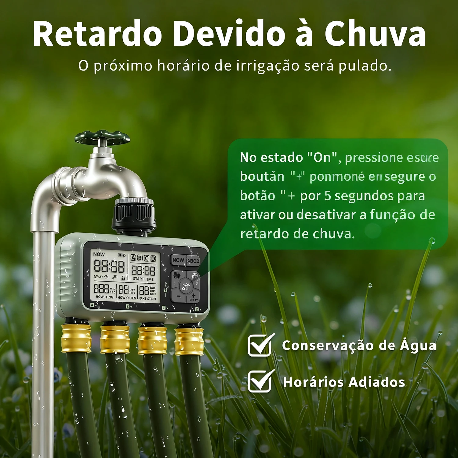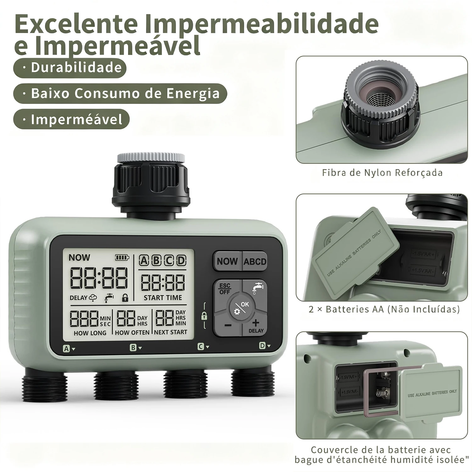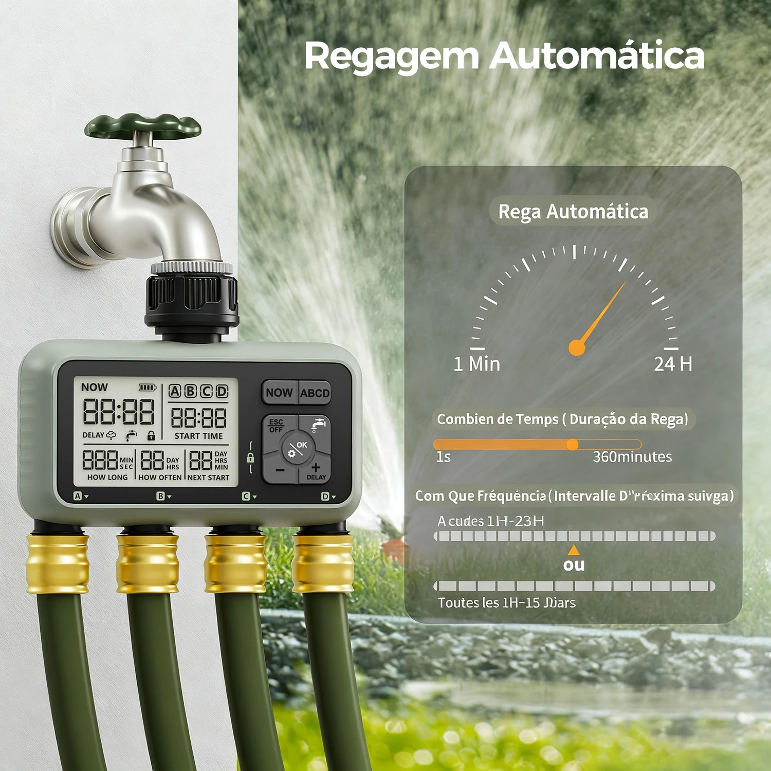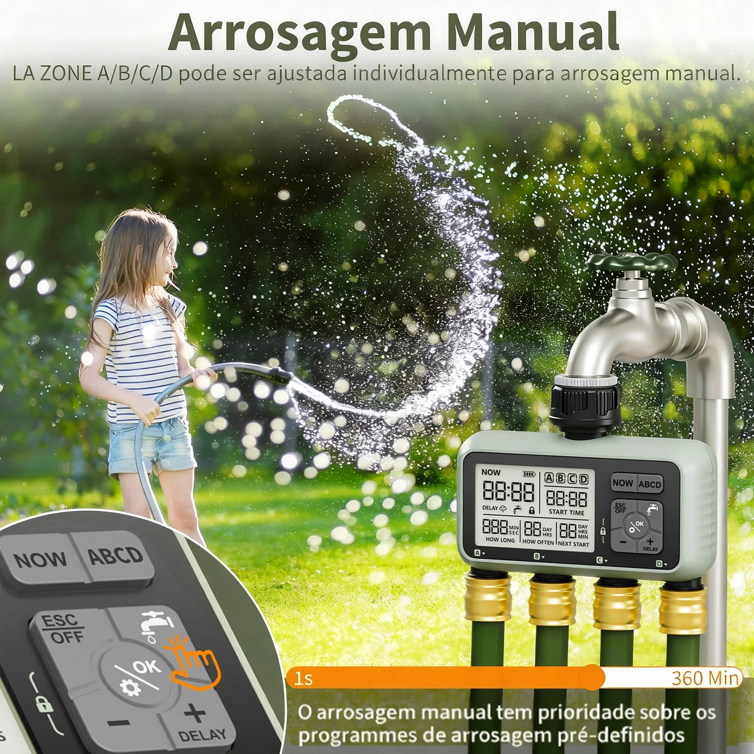 Diivoo temporizador de água 4 zona jardim programável temporizador de irrigação automática com atraso de chuva manual/modo automático rega para gramado quintal