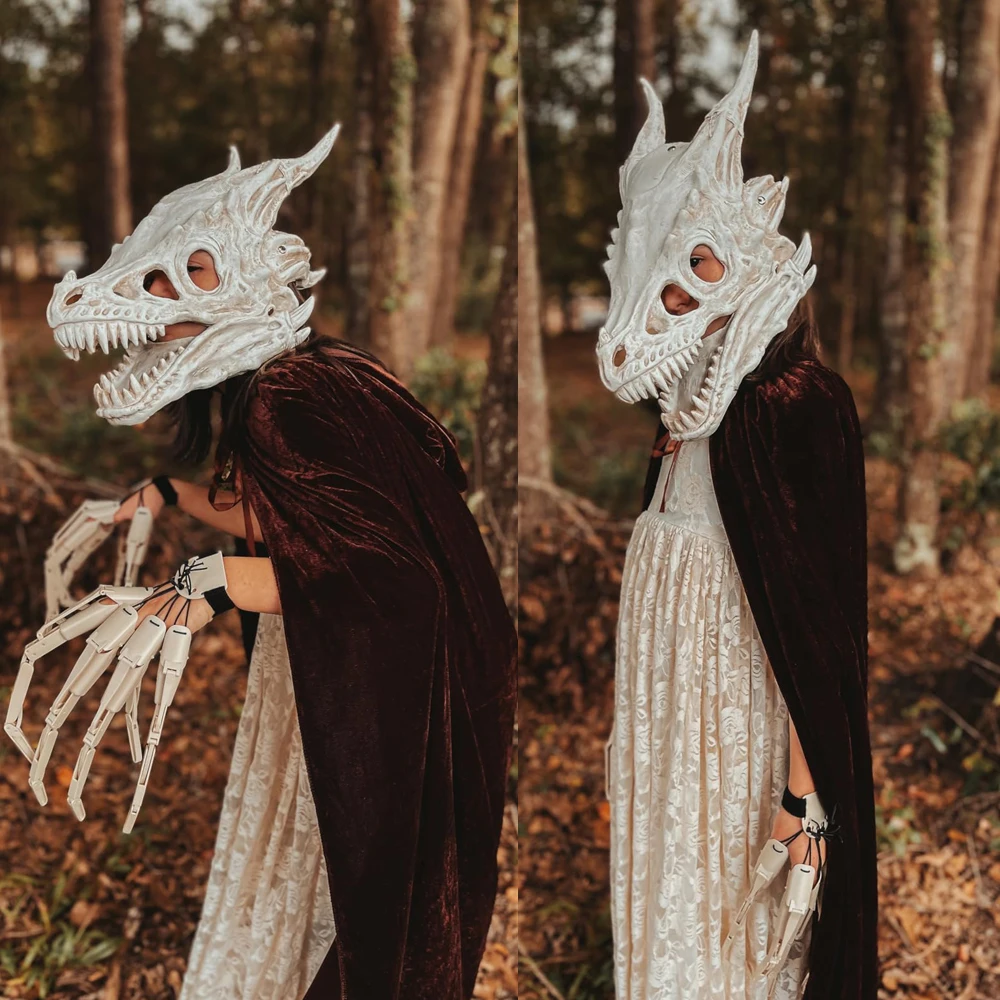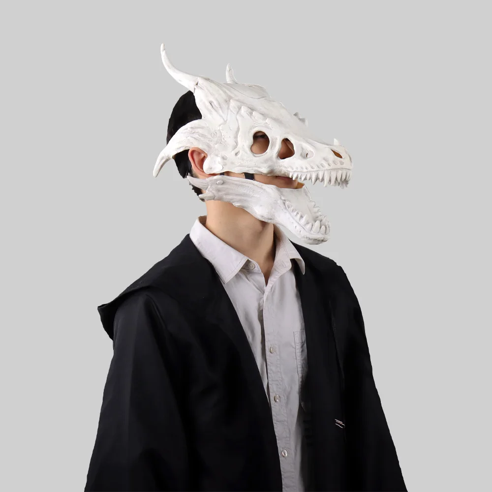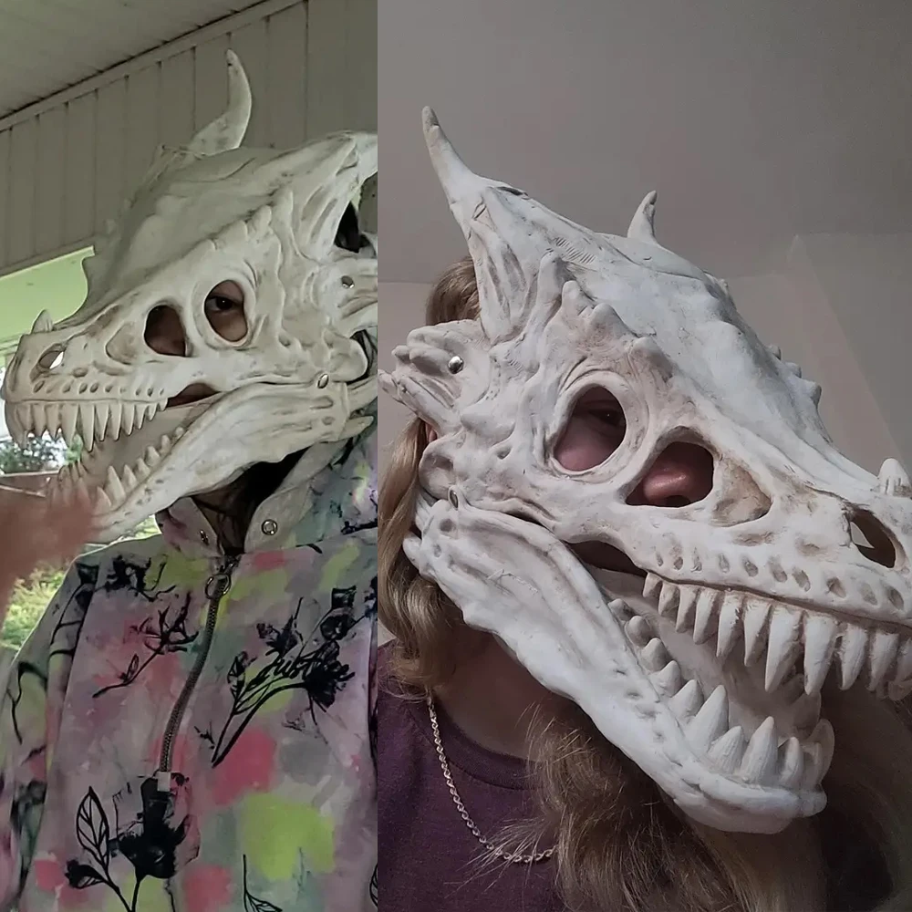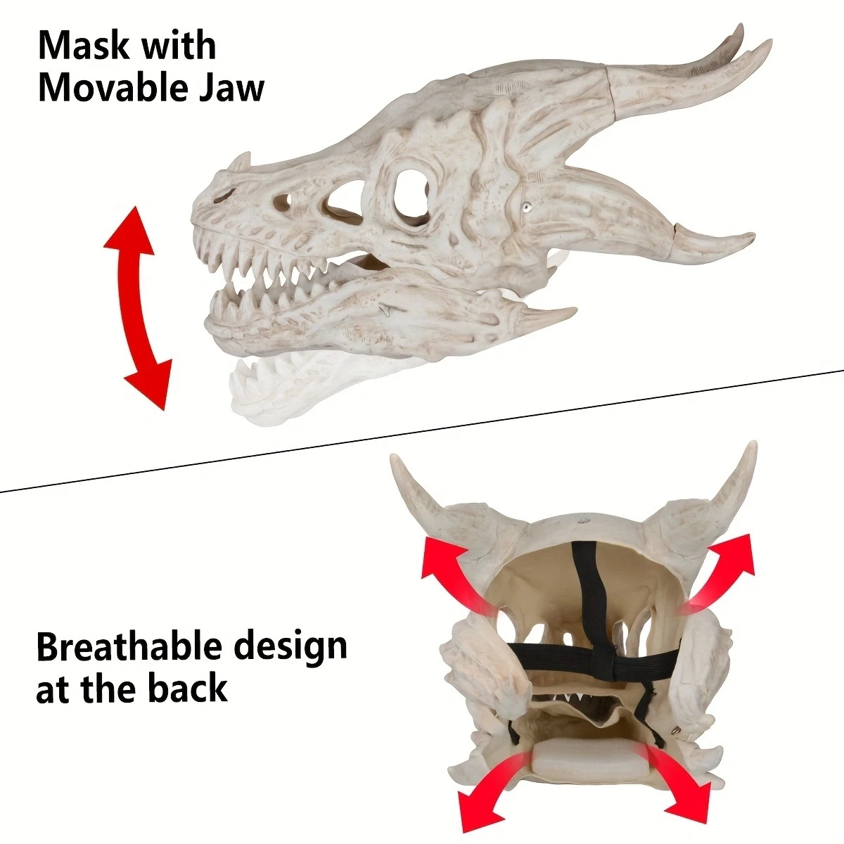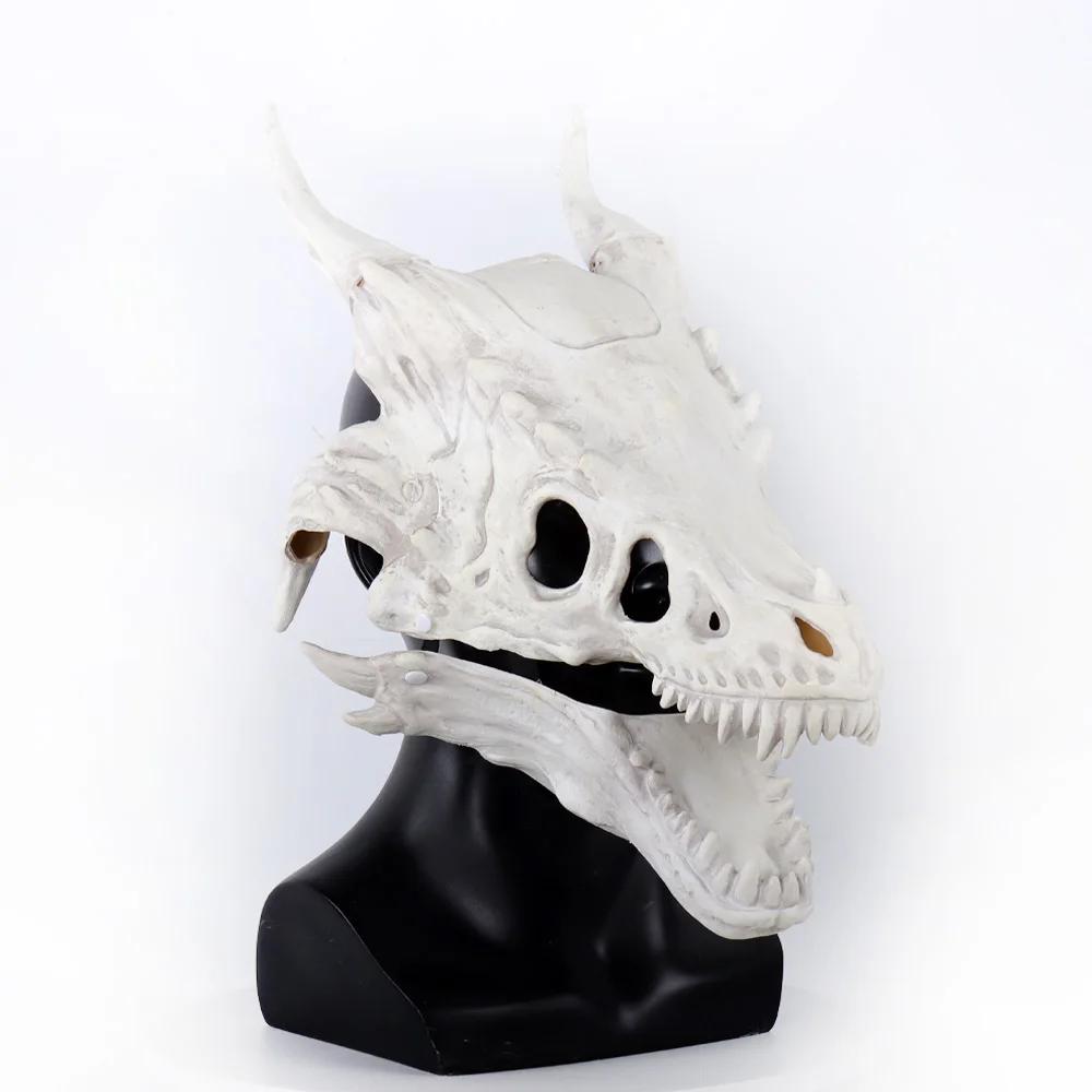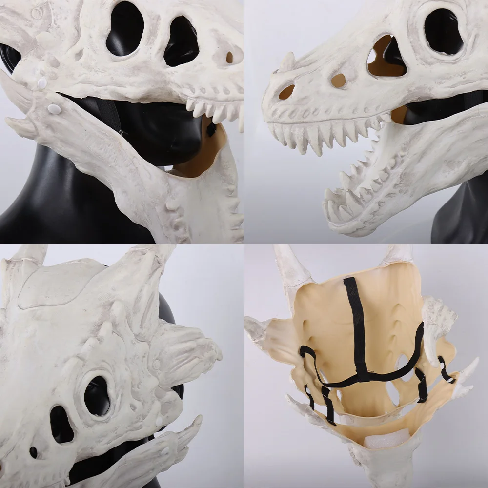 Dinosaur Raptor Skull Mask, Animal Cosplay, Mandíbula Móvel, Cabeça de Dragão Osso, Capacete de Látex, Festa de Carnaval de Halloween