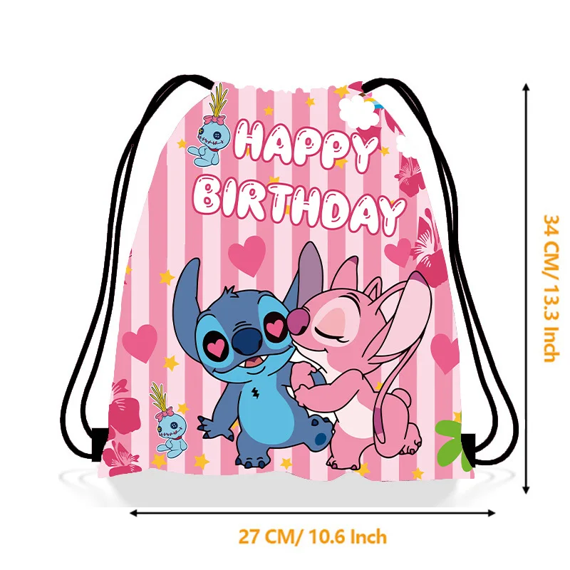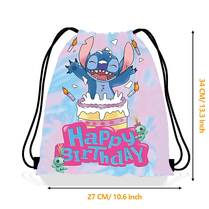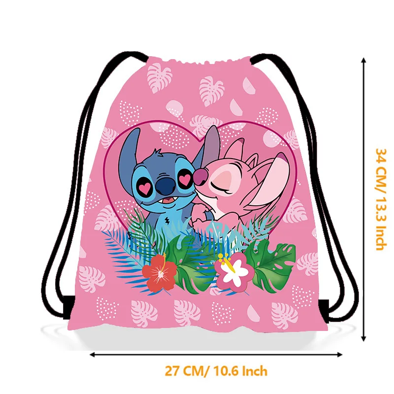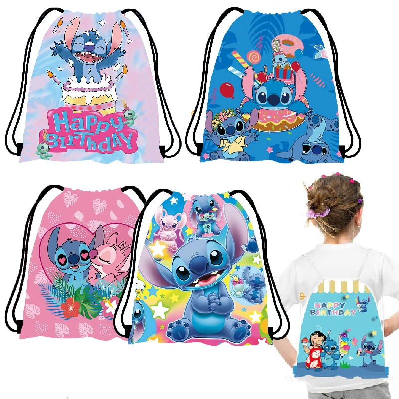 - > Disney anime ponto não tecido saco de cordão kawaii lilo & stitch festa de aniversário presente saco crianças ombro armazenamento presentes