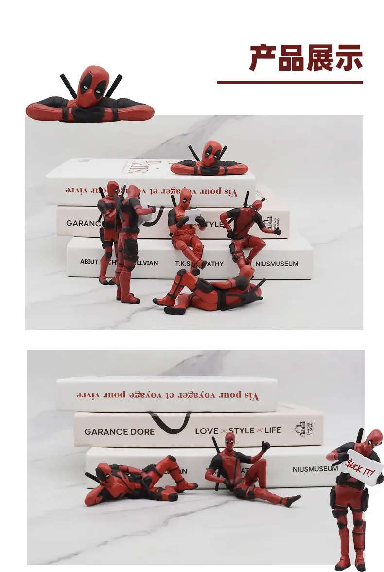 - > Disney deadpool 2 figura de ação sentado/piso postura modelo anime x-men mini boneca decoração pvc coleção estatueta brinquedo