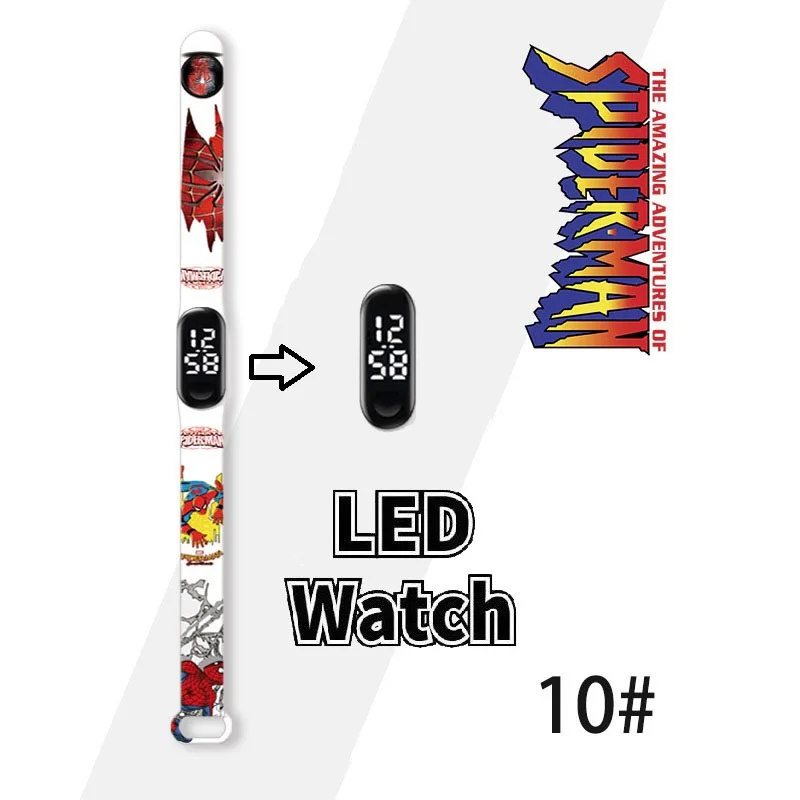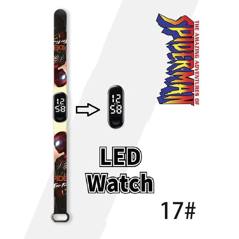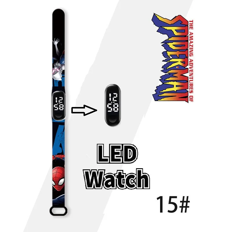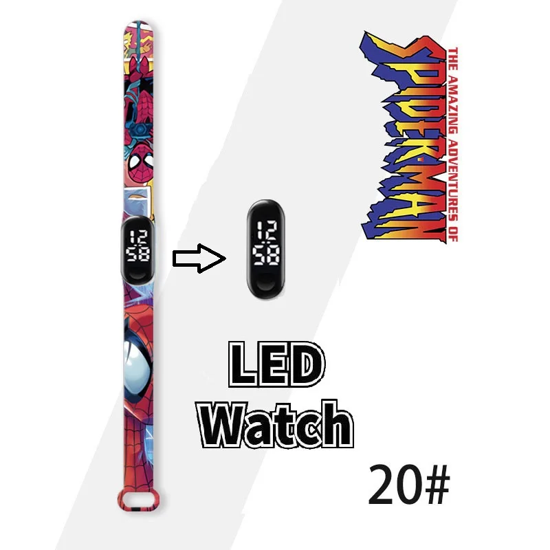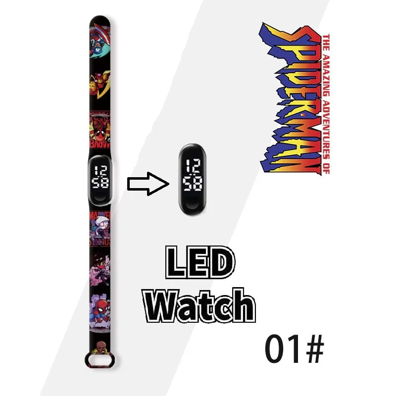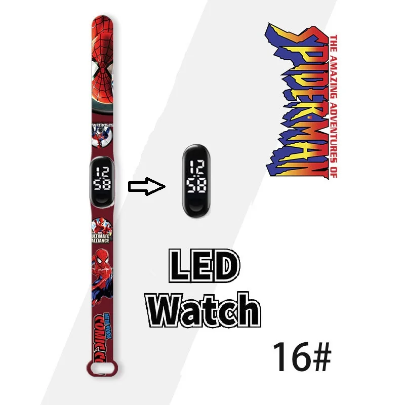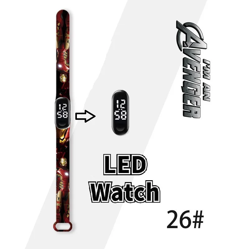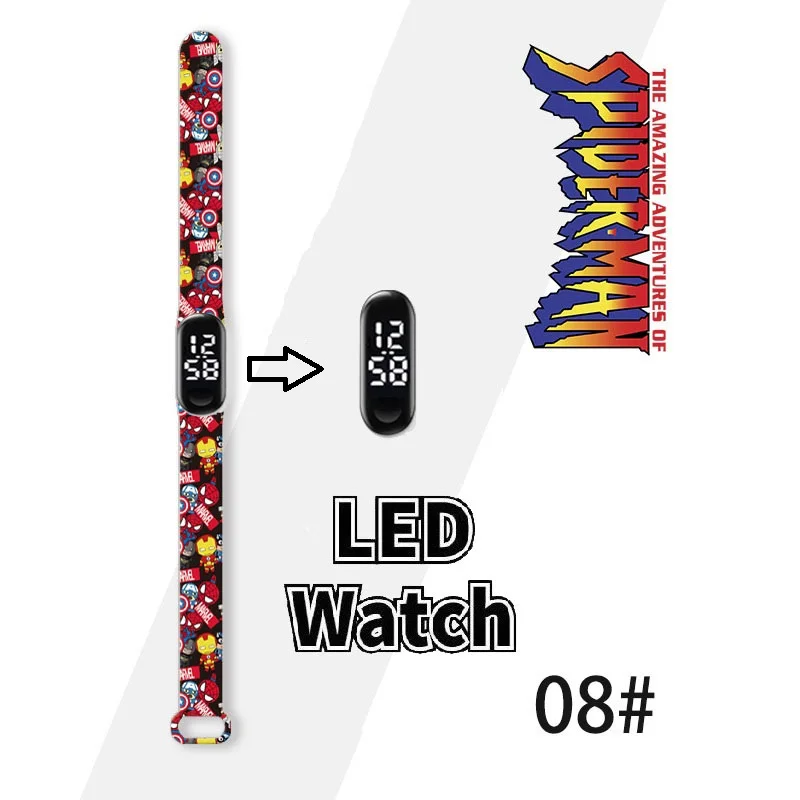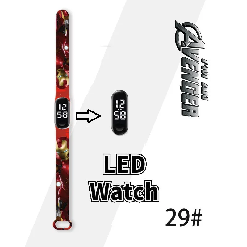 - > Disney dos desenhos animados relógio infantil anime figura spiderman homem de ferro impressão led eletrônico à prova dwaterproof água esportes pulseira relógio crianças presentes