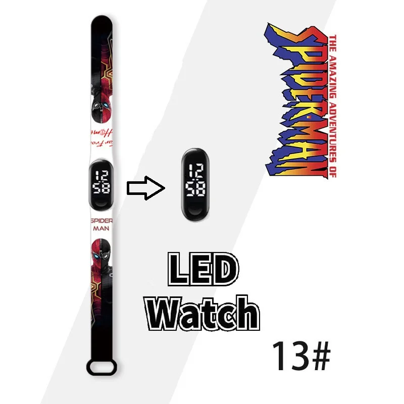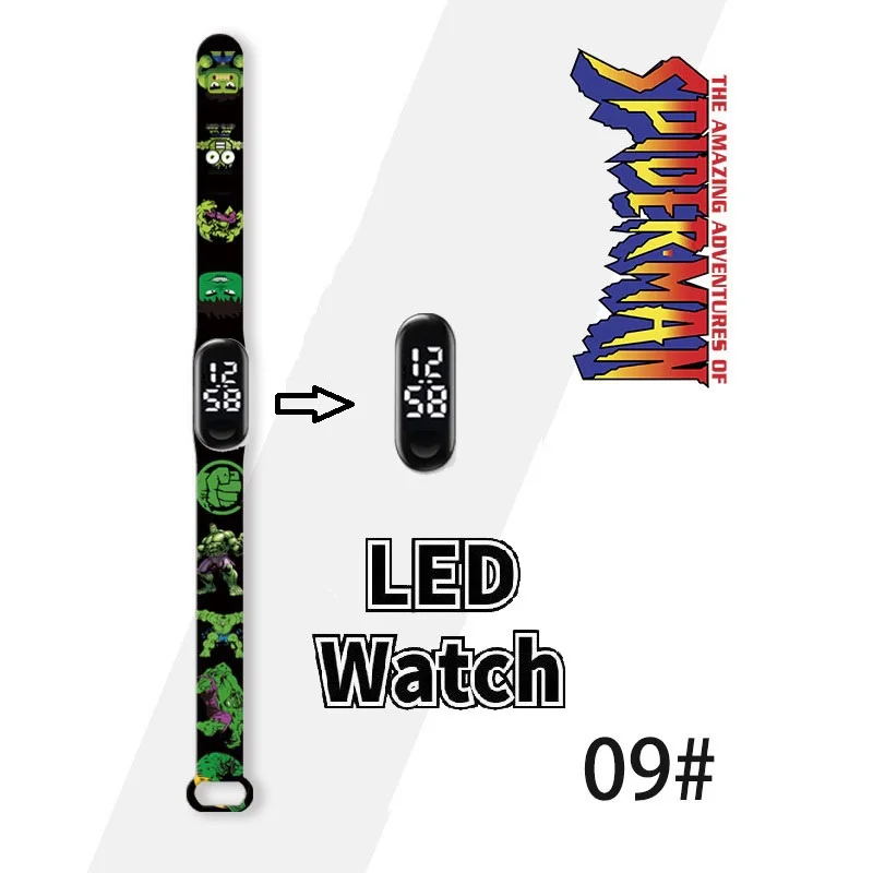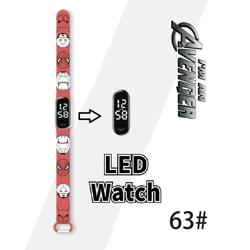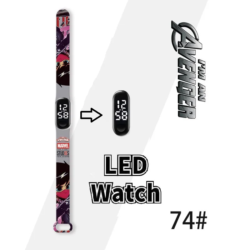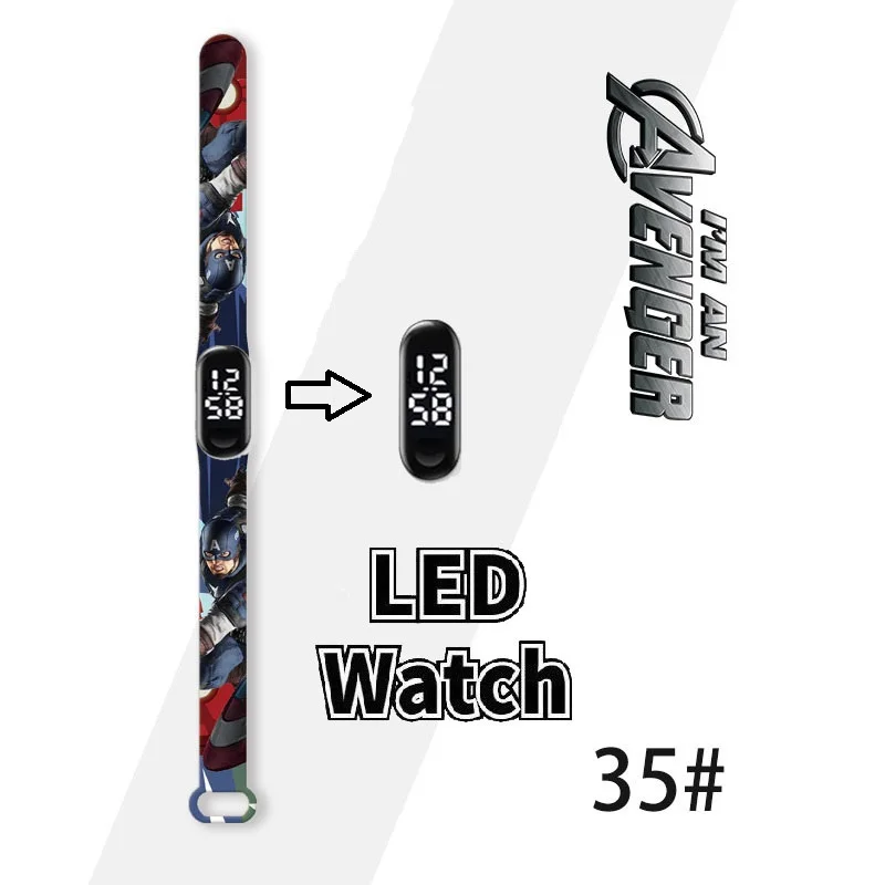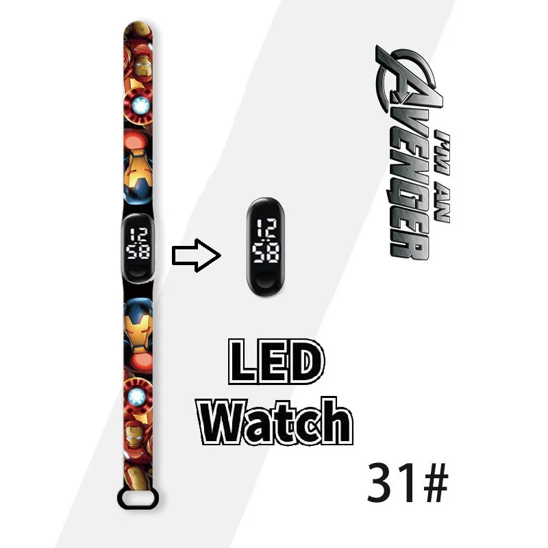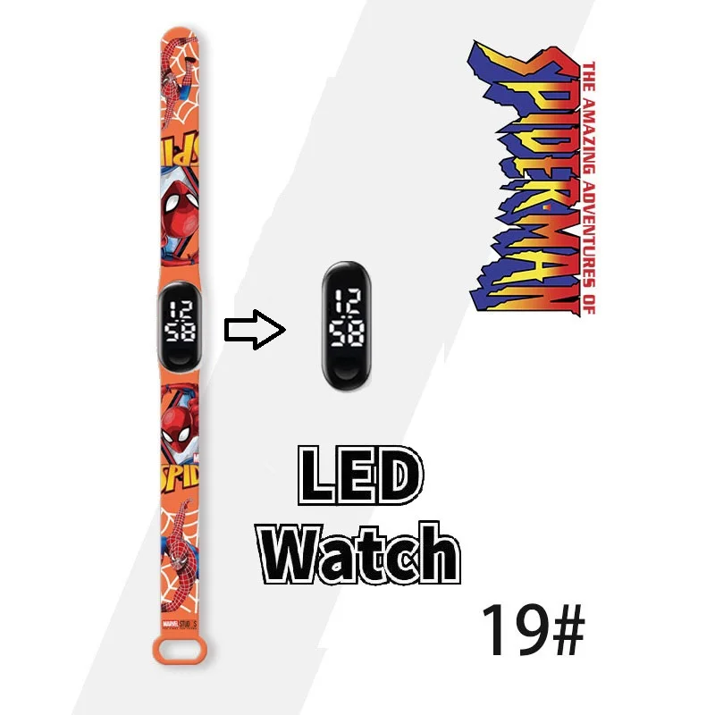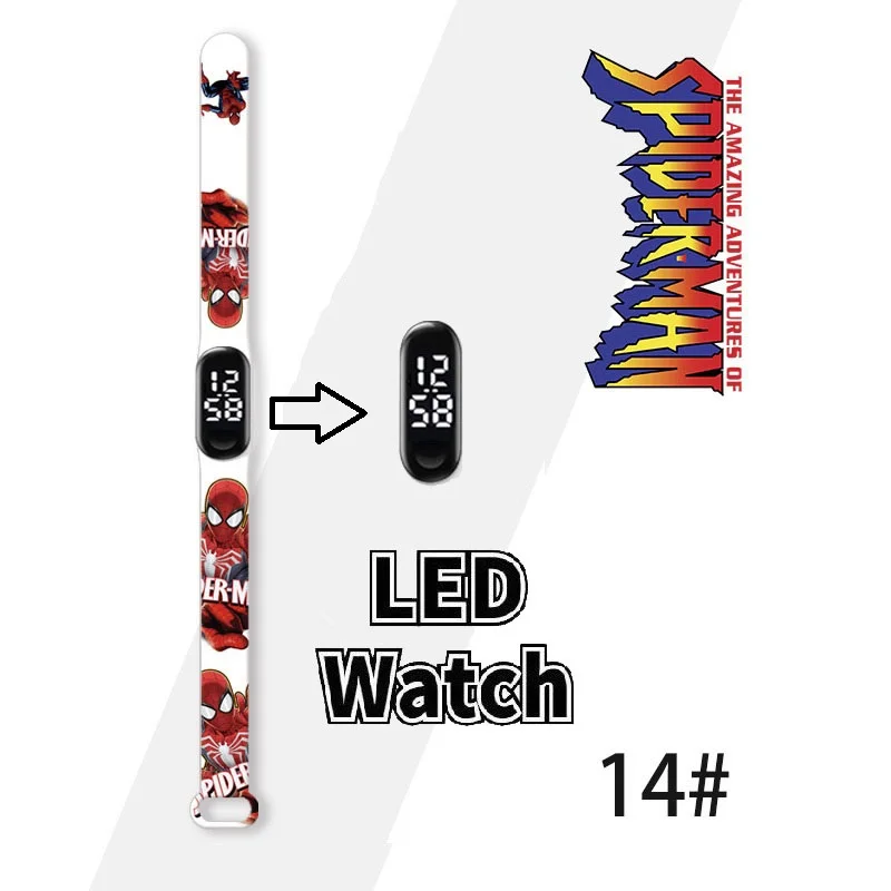- > Disney dos desenhos animados relógio infantil anime figura spiderman homem de ferro impressão led eletrônico à prova dwaterproof água esportes pulseira relógio crianças presentes