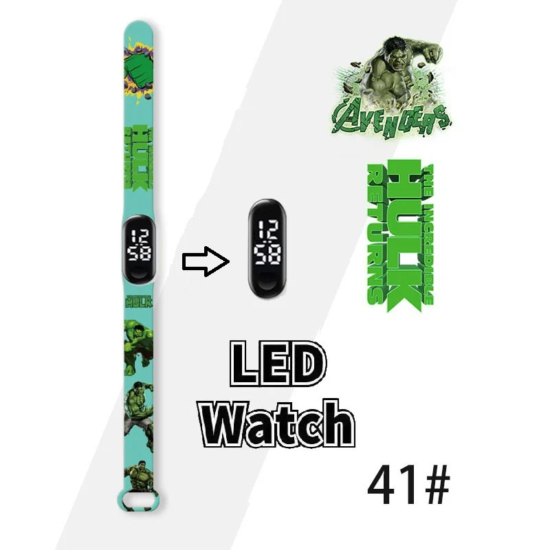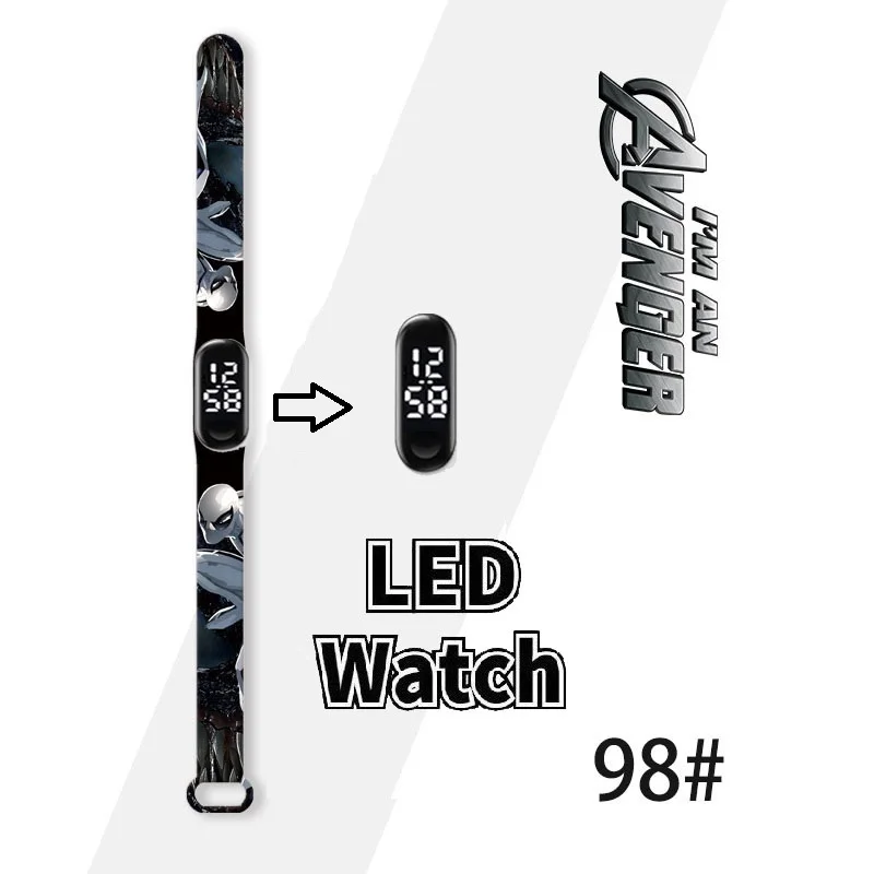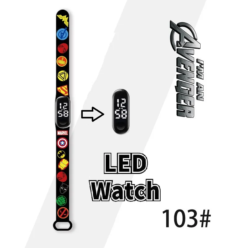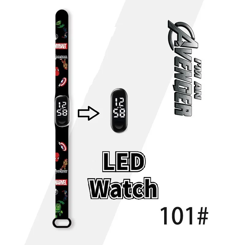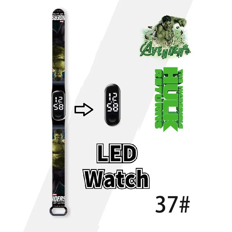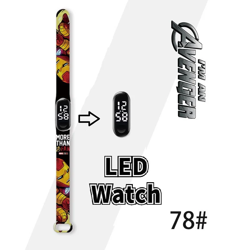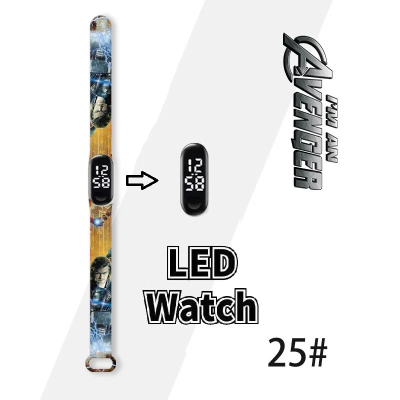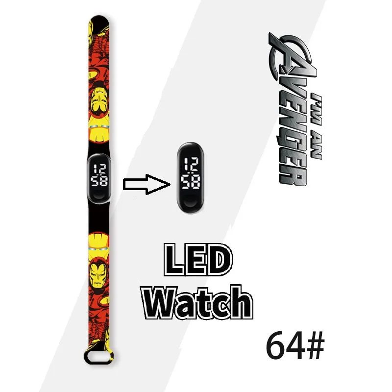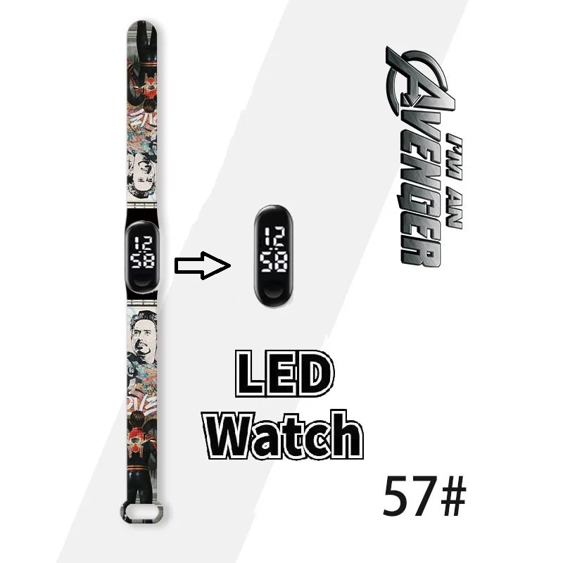 - > Disney dos desenhos animados relógio infantil anime figura spiderman homem de ferro impressão led eletrônico à prova dwaterproof água esportes pulseira relógio crianças presentes