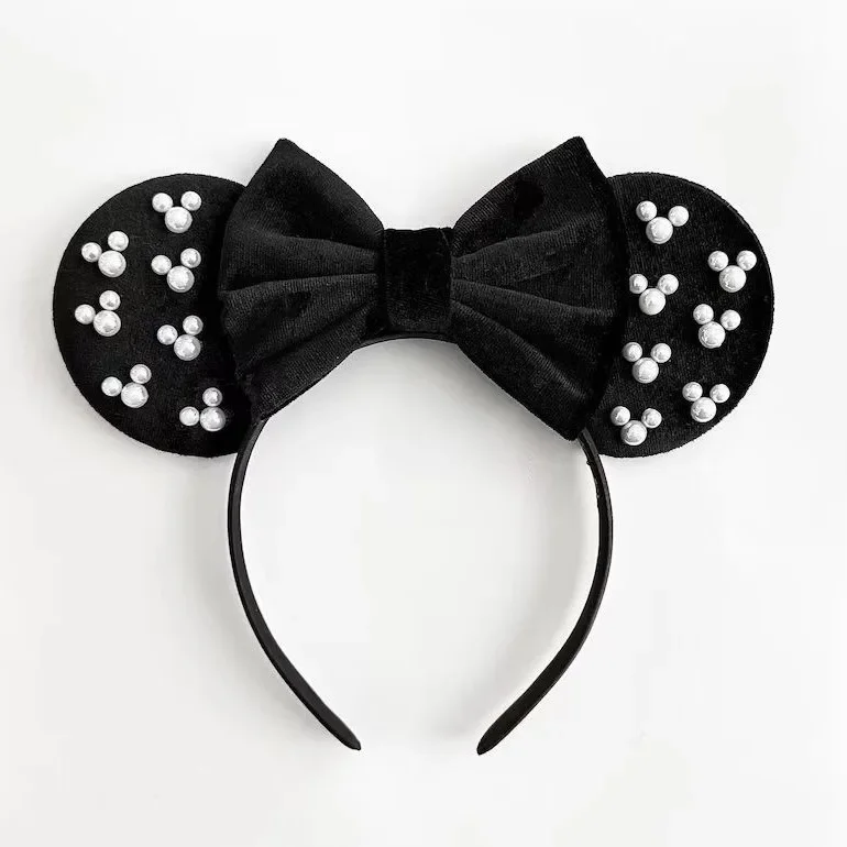 Disney Pearl Mickey Hair Hoops para crianças, parque de diversões Headwear, arco cabelo Hoops, acessórios decorativos