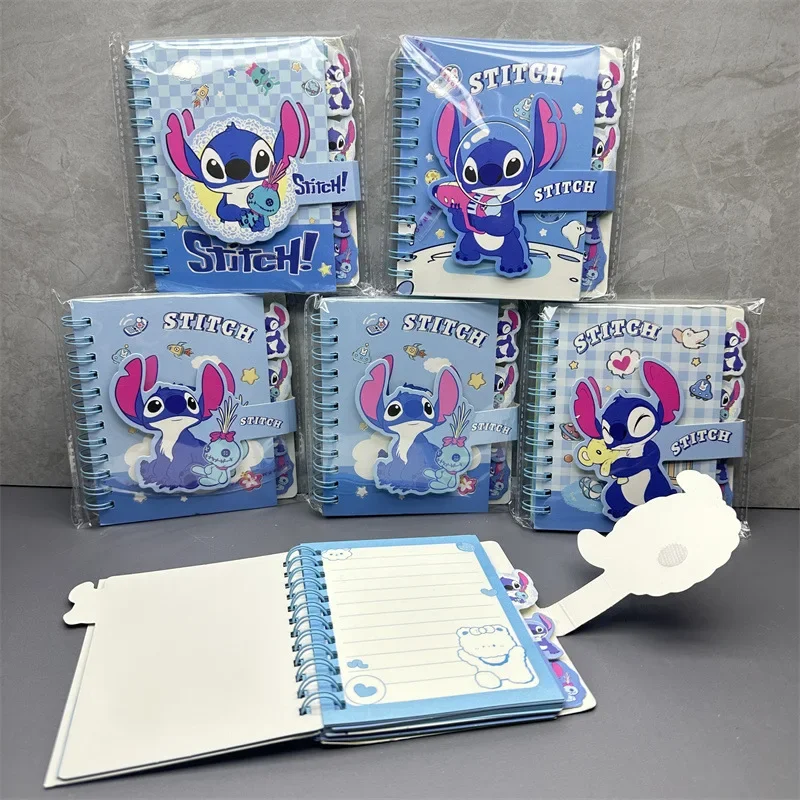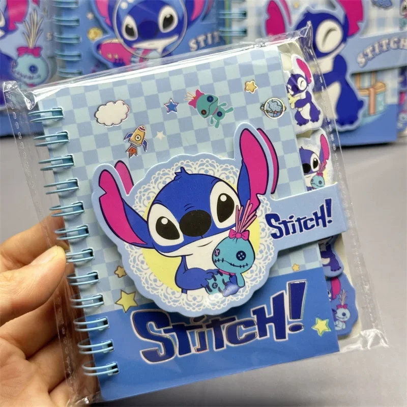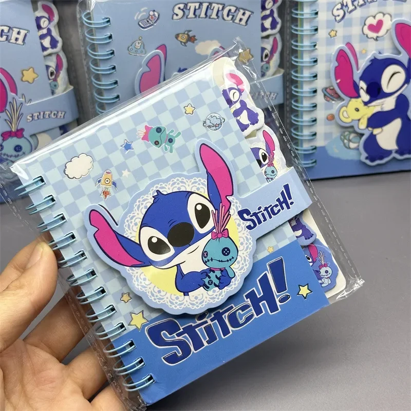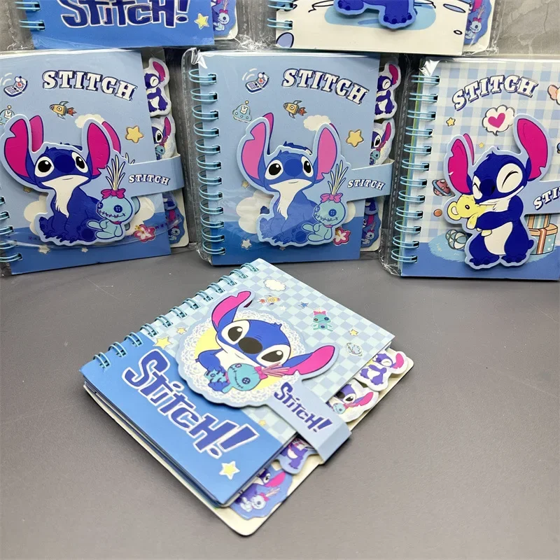 - > Disney stitch caderno anime dos desenhos animados material escolar portátil diário moda material de escritório bobina livro crianças feriado presente natal