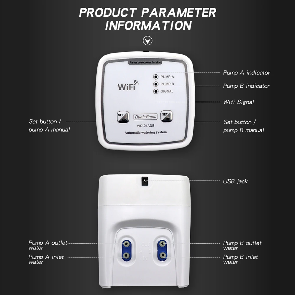 Dispositivo de rega inteligente wi-fi, bomba dupla cronometrada, sistema de irrigação por gotejamento automático, controle remoto por aplicativo para jardim e terraço