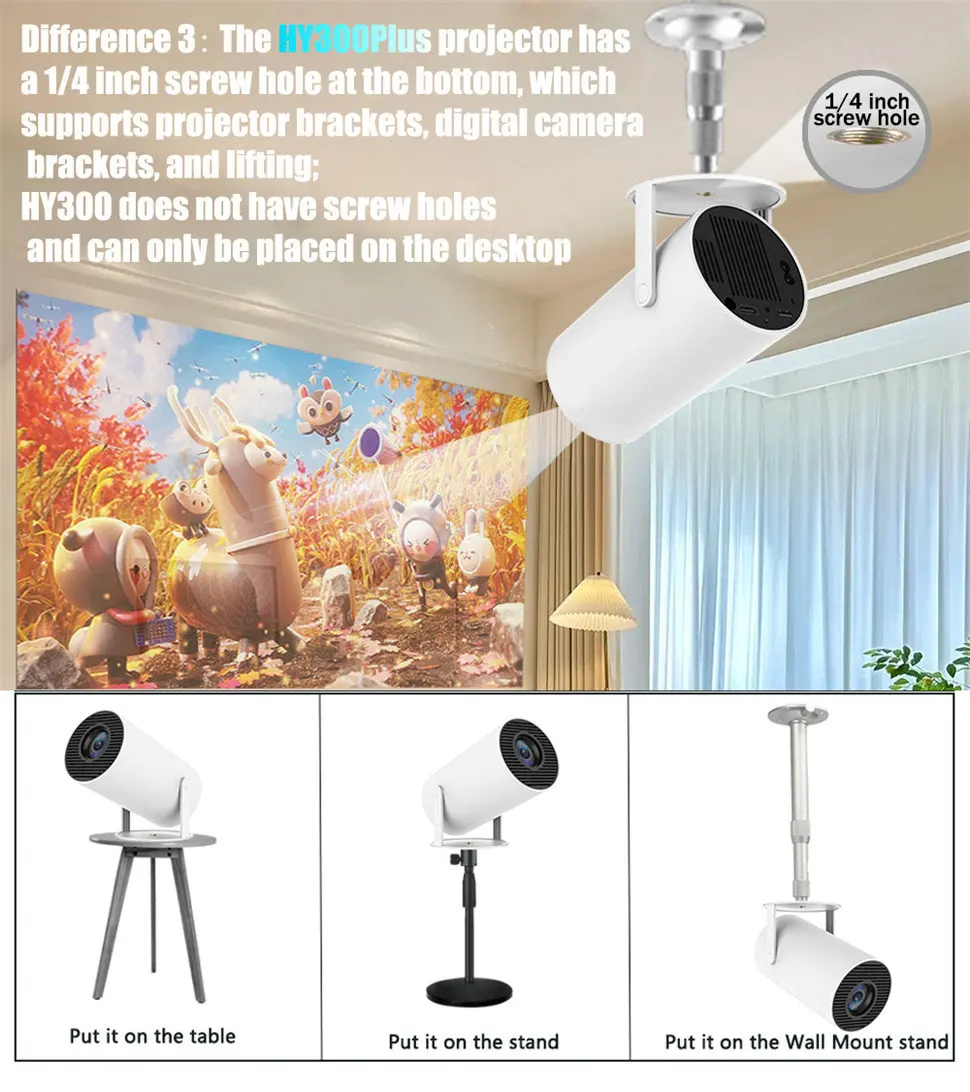 • Projetor Portátil HD :O DITONG HY300 Plus é um projetor portátil HD, oferecendo uma qualidade de imagem superior e uma experiência de visualização superior.