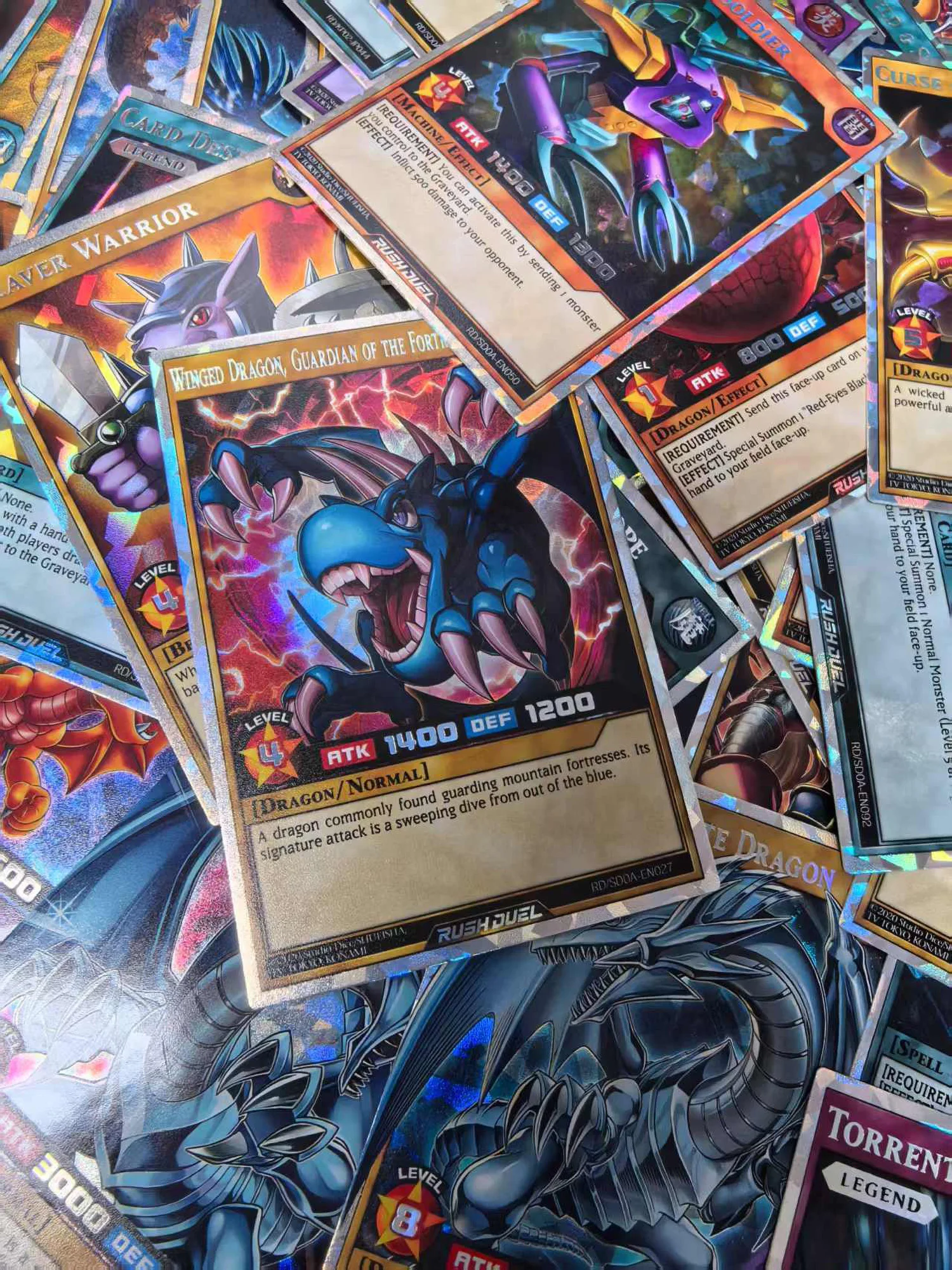 - > Diy 72 pçs novo yu gi oh rush duel cartões clássico duelo monstro coleção olhos vermelhos & azuis yugioh cartões holográficos brilhantes em inglês