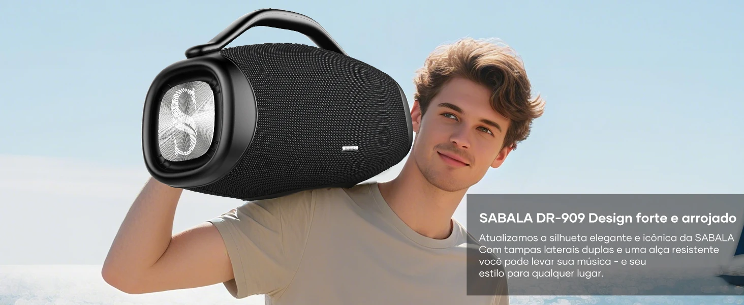 Com potência de verdade, design robusto e bateria de longa duração, a DR-909 é a escolha ideal pra curtir música com a galera — seja na praia, na piscina ou onde a diversão estiver!
