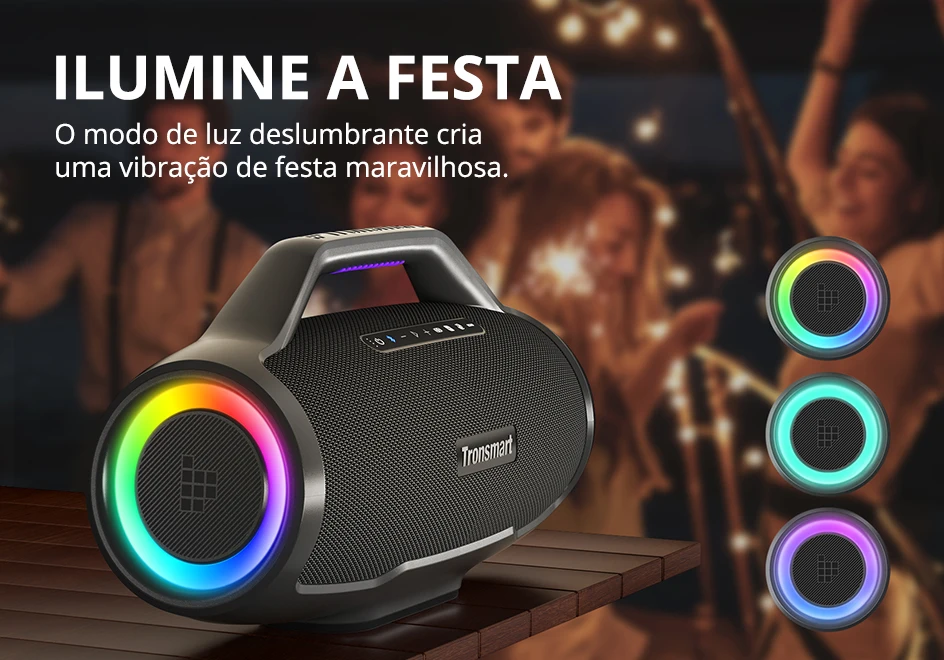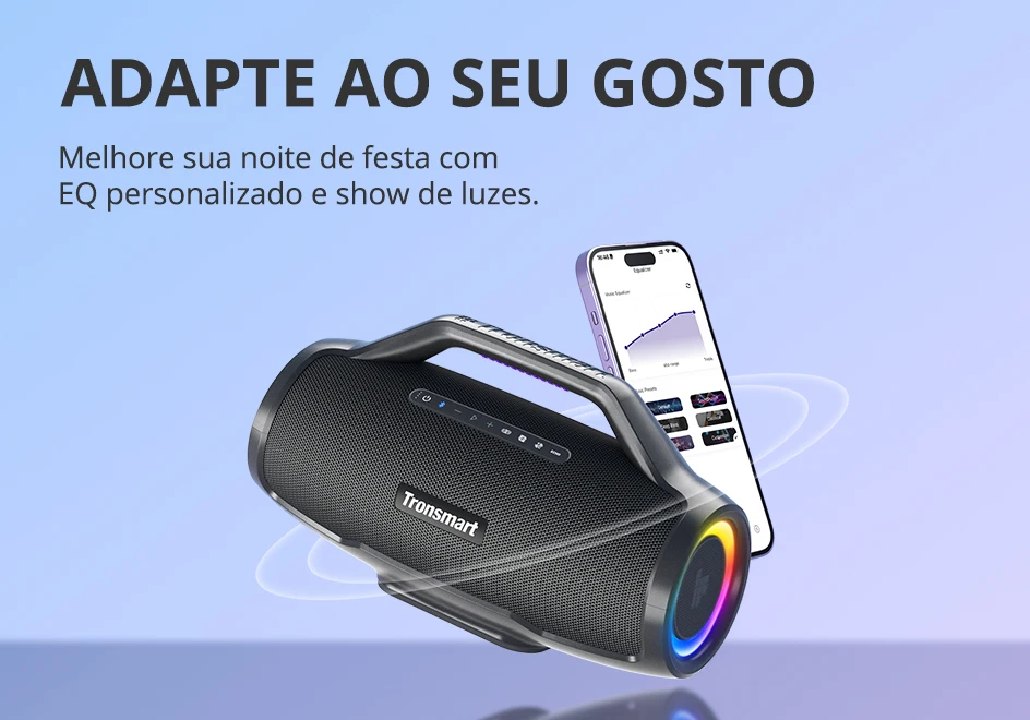 Personalize os modos EQ, escolha show de luzes, a próxima música e controle TuneConn através do aplicativo Tronsmart.