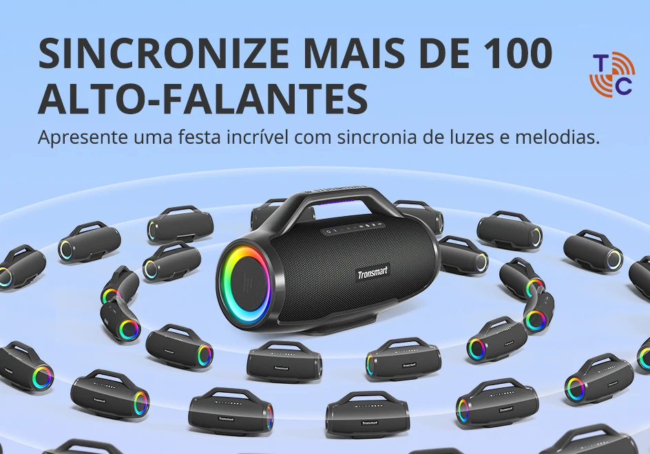 - > [do Brasil] caixa de som bluetooth Tronsmart Bang Max Alto-falante 130W com 3 Way Sistema de Som, 30h playtime, Sync Up 100 + alto-falantes, Controle APP