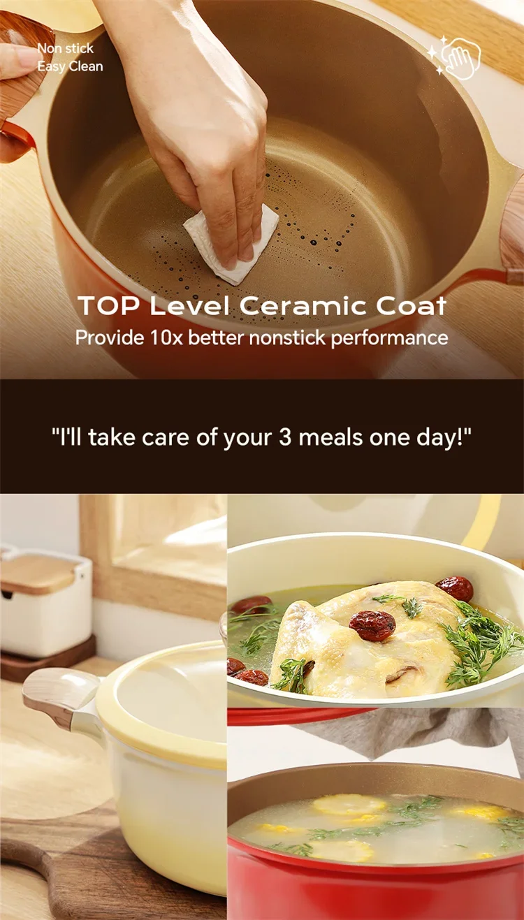 Panela antiaderente não revestida de cerâmica 0 flúor sopa saudável frigideira fogão indução panela universal ferramentas de cozinha
