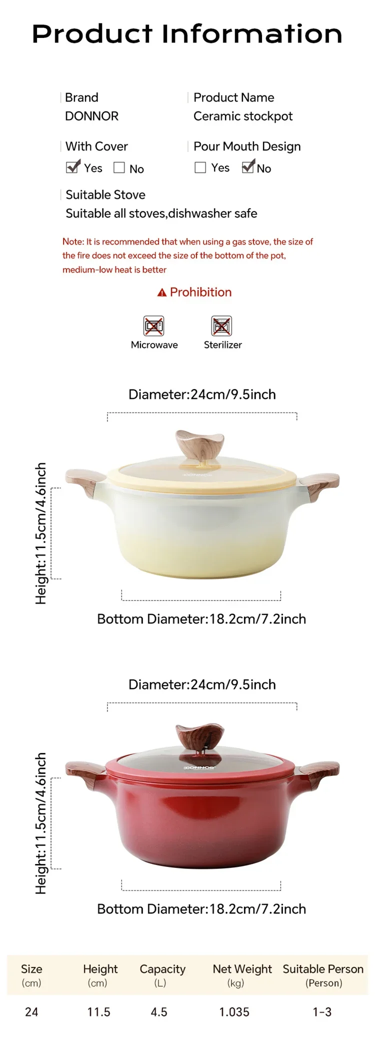 Donnor cerâmica não revestida antiaderente pan 0 panela de sopa de flúor frigideira fogão de indução pote universal cozinha cozinhar ferramentas