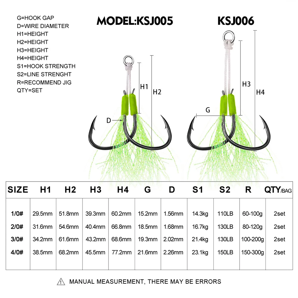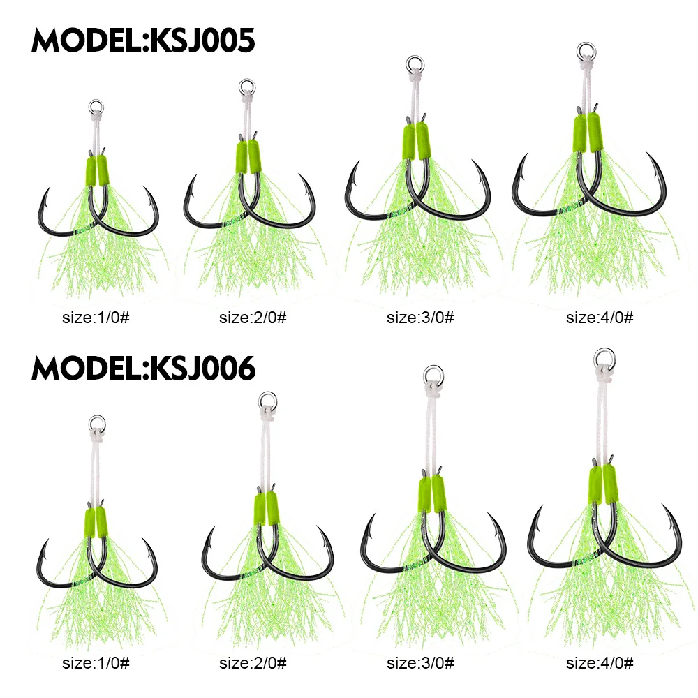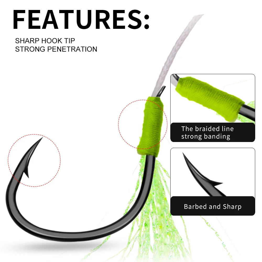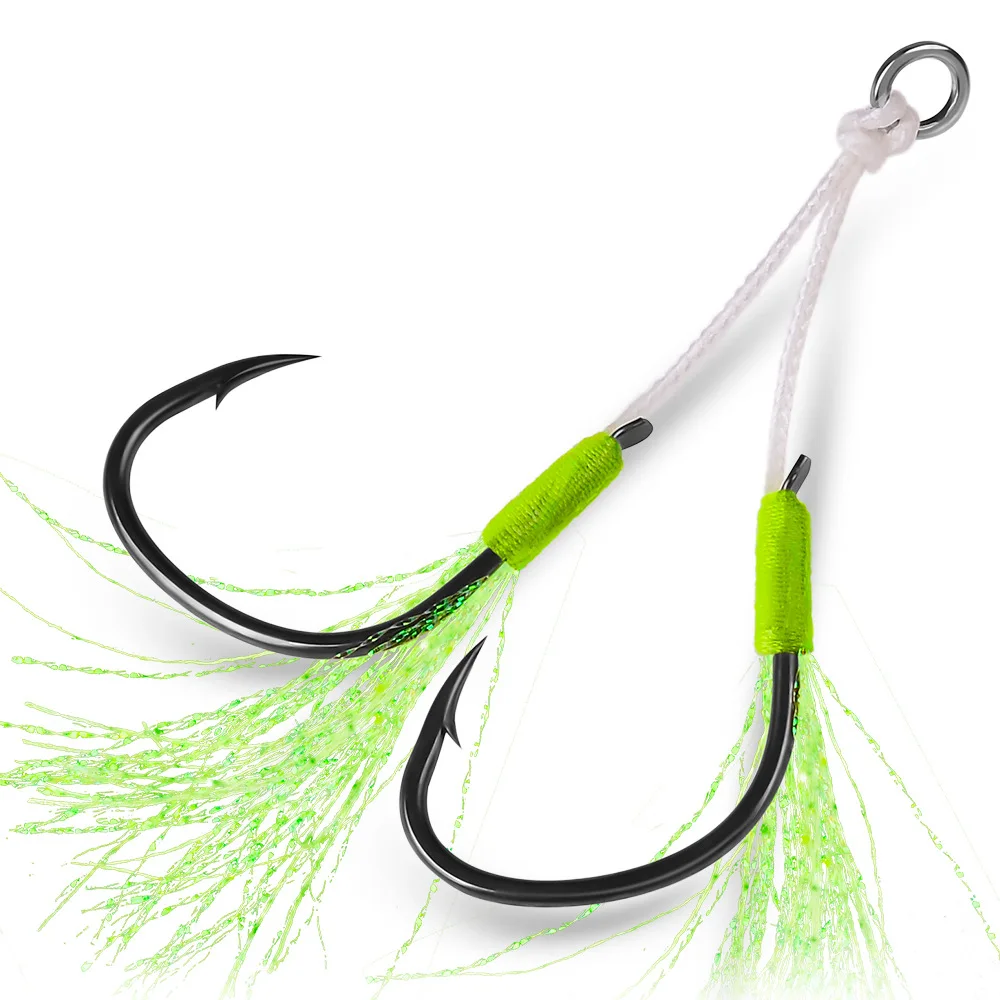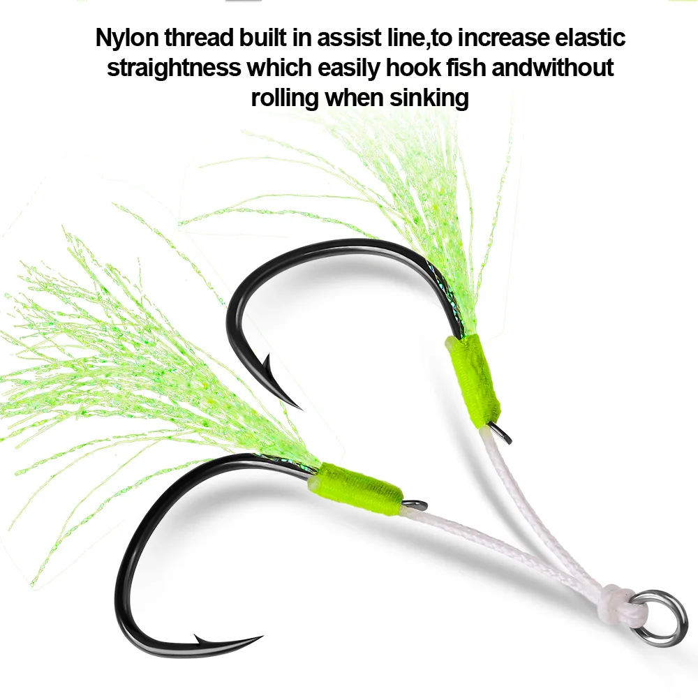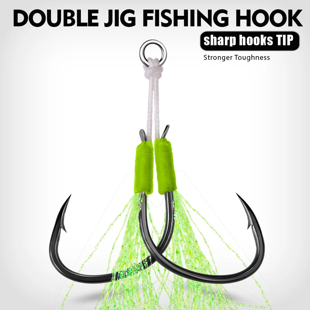 Double Jigs High Carbon Steel Fishing Hook, Slow Jigging Cast, Ganchos de Pena, Sharp Assist Lure, 2 Pares por lote