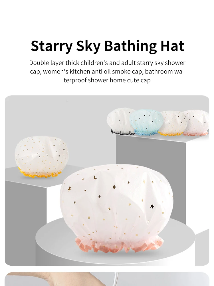 Double-Layer Shower Cap para senhoras, PVC, impermeável, à prova de óleo, banheiro, cozinha, agregado familiar, banhando-se