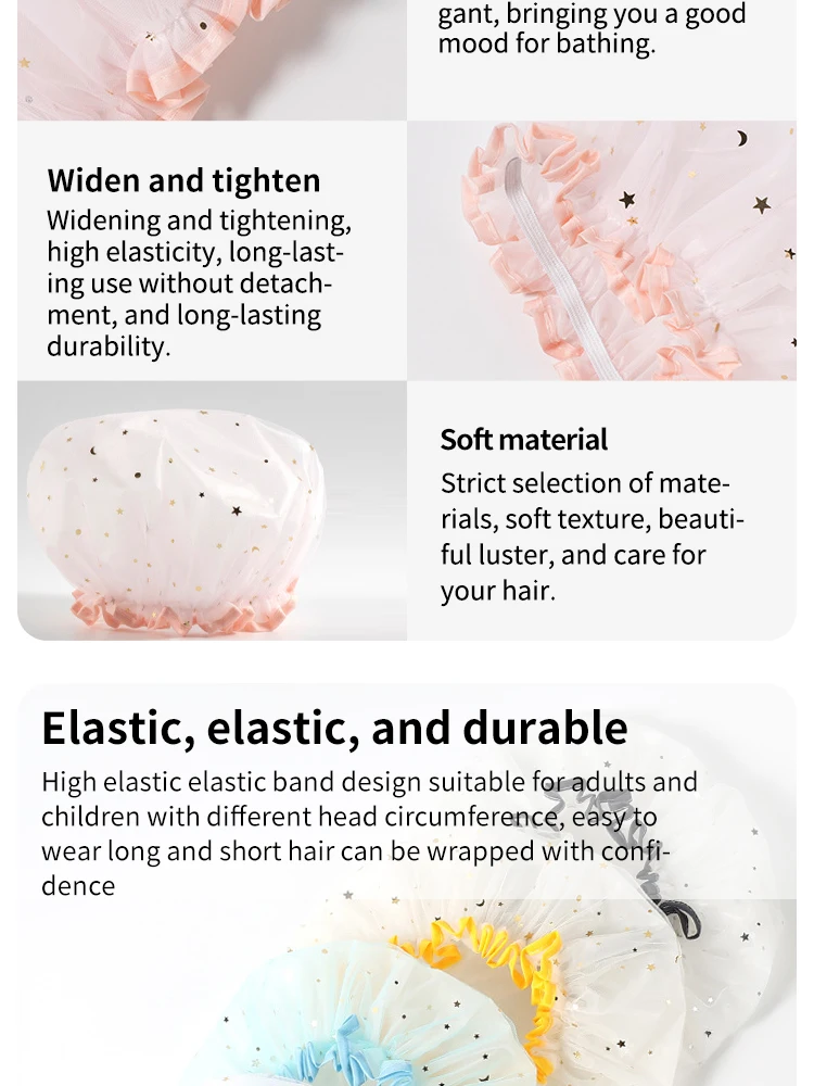 3. FÁCIL DE USAR E AJUSTAR: A tampa de banho é ajustável em tamanho, adequada para pessoas com diferentes formas de cabeça e, ao mesmo tempo, fácil de usar e não é fácil de escorregar.