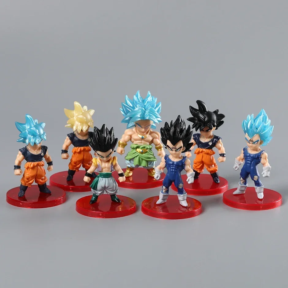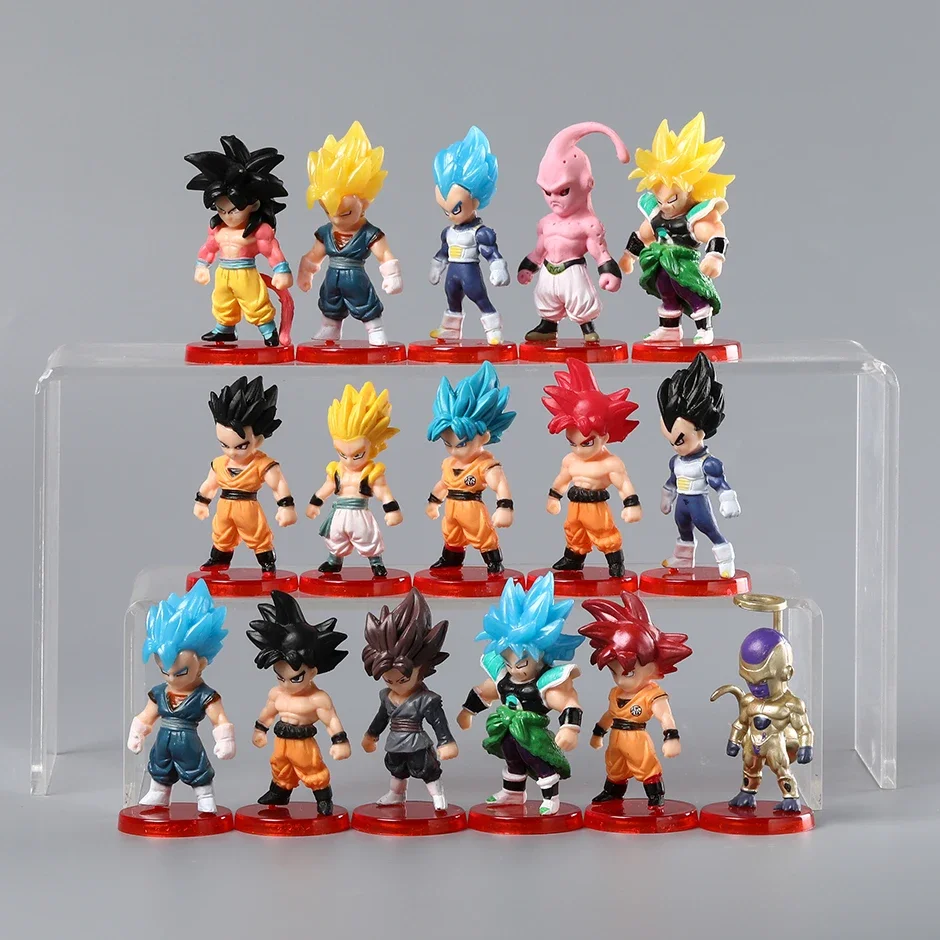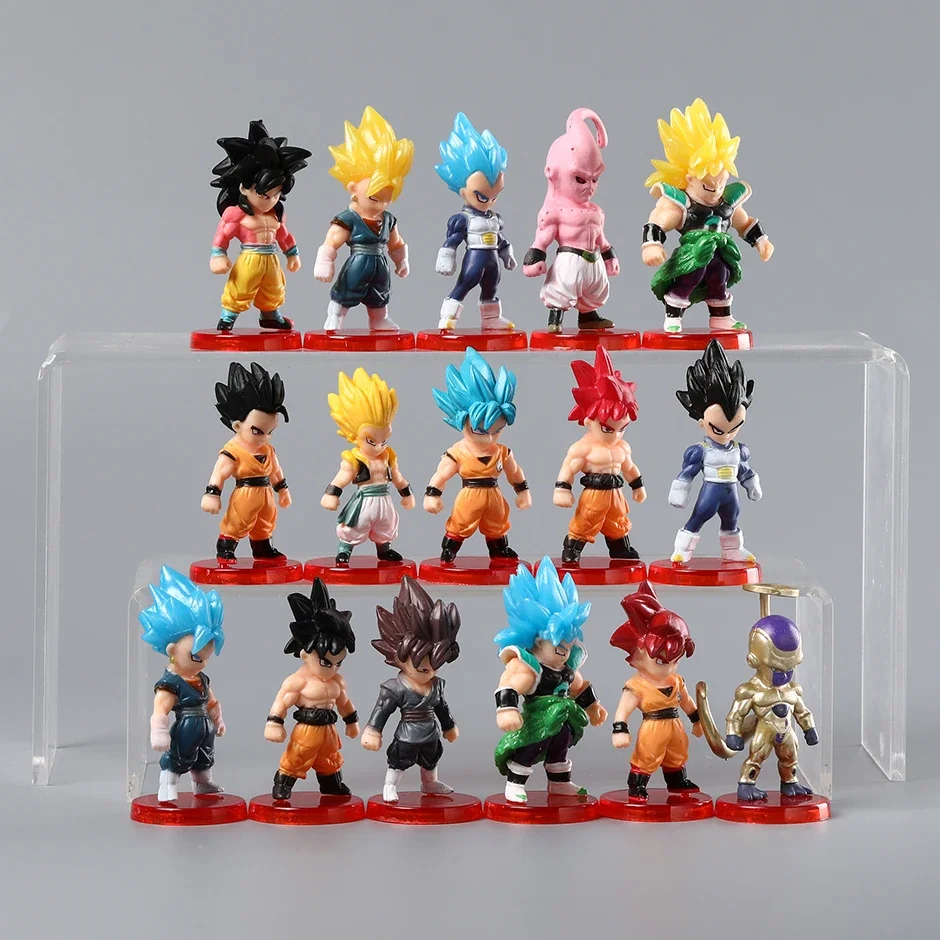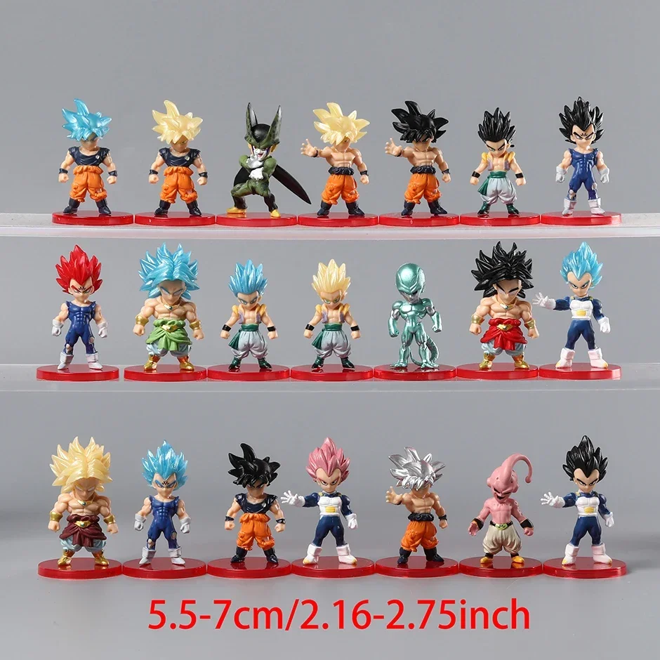 - > Dragon Ball Z SS Azul Son Goku Vetega Gotenks Majin Bu Broly Freeza Figuras de Celular Modelos Enfeites de Mesa Brinquedos Conjunto de Presente de 21 16
