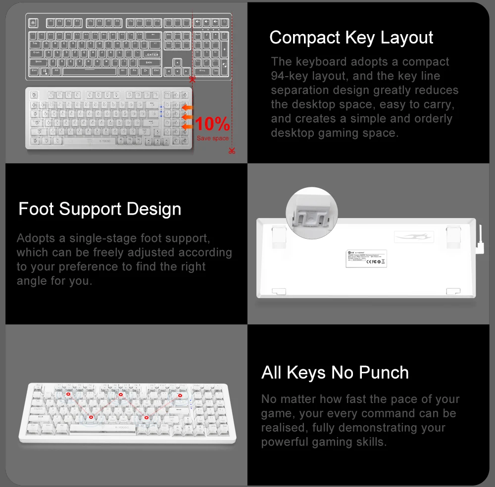 Layout compacto com 94 teclas-E-YOOSO Z-94 teclado mecânico mantém teclado numérico e teclas de seta, será muito conveniente para o seu trabalho e jogos.