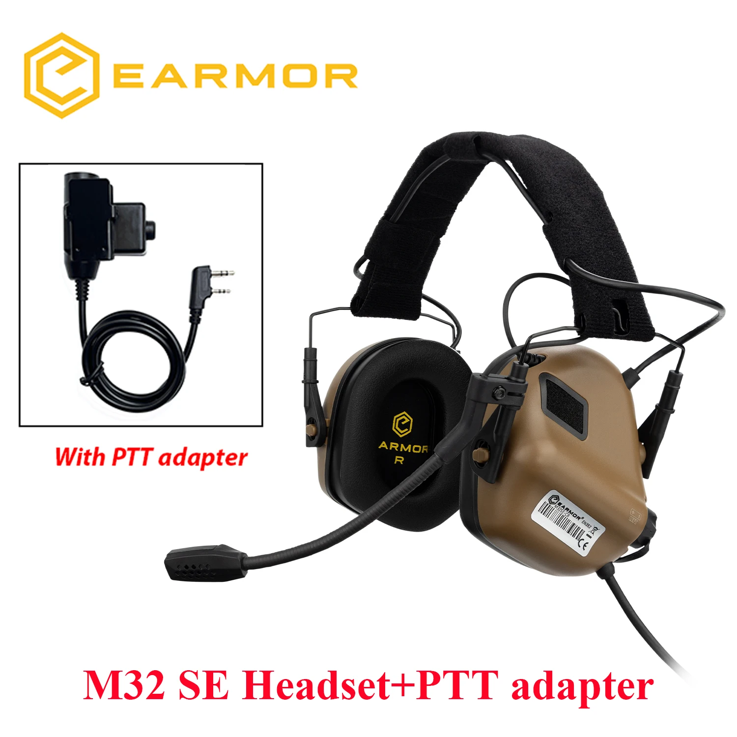 Earmor m32 mod4/se tiro earmuffs tático redução de ruído fone com capacete arco ferroviário adaptador com kenwood ptt adaptador novo