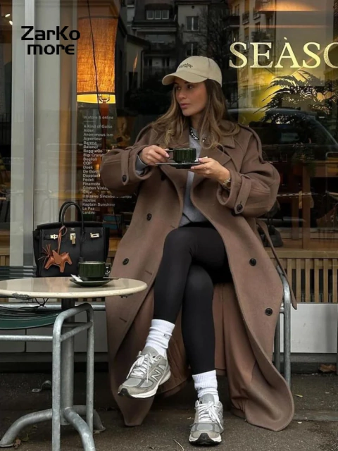 - > Elegante cinto cinza longo casaco de lã feminino gola único breasted casacos de rua feminino 2025 outono inverno nova senhora peacoat