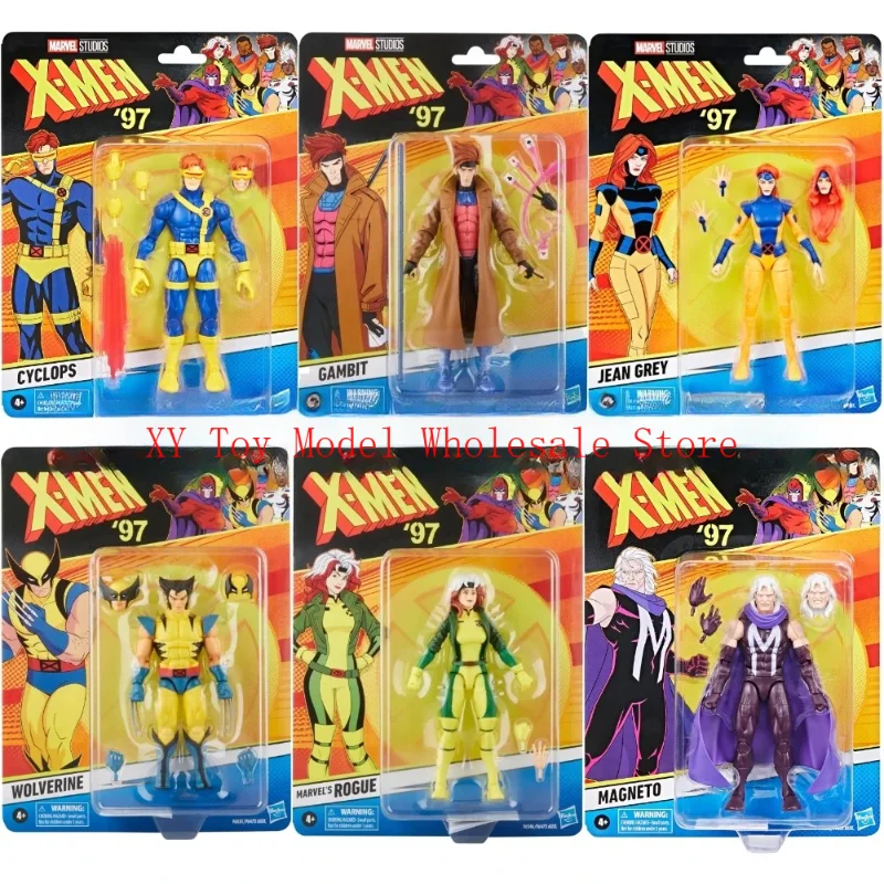 - > Em estoque lendas retro cardback x-men '97 wolverine rogue magneto ciclope gambit jean cinza figura de ação modelo brinquedo presente
