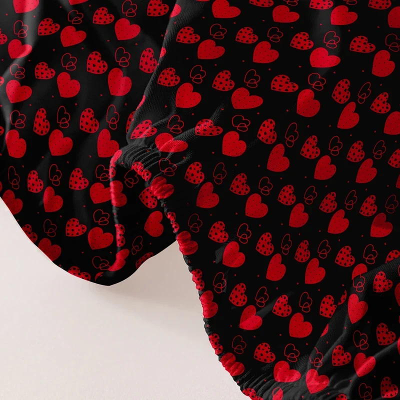 Em forma de coração impresso fosco cabido folha, quarto impresso tampa de cama, 1 cama moderna simples, não incluído (fronhas)