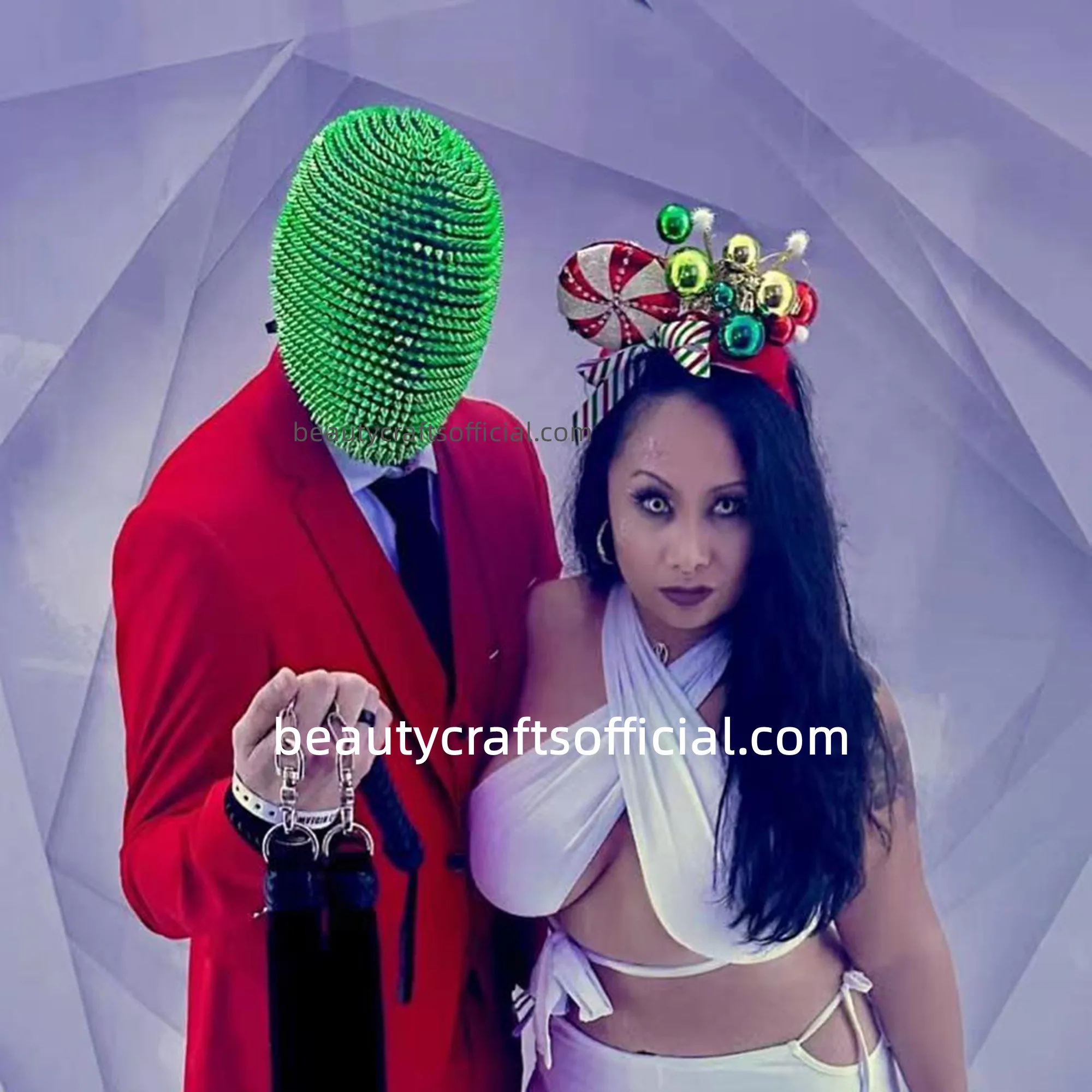 Picos cravejados máscara facial completa capa halloween cosplay máscara engraçada noite clube máscara de dança para brinquedos adultos