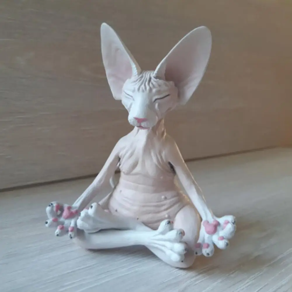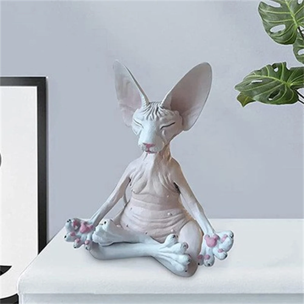 Sphinx caprichoso buda gato estatueta esfinge meditação gato meditar esculturas de arte ao ar livre jardim estátuas estatuetas yoga