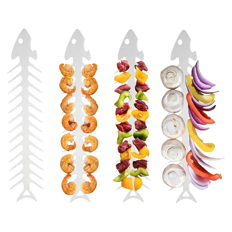 Espetos de churrasco de aço inoxidável, espeto de osso de peixe, ferramenta de perfuração de carne, utensílios para churrasco, churrasqueira, acessórios de rede para churrasco
