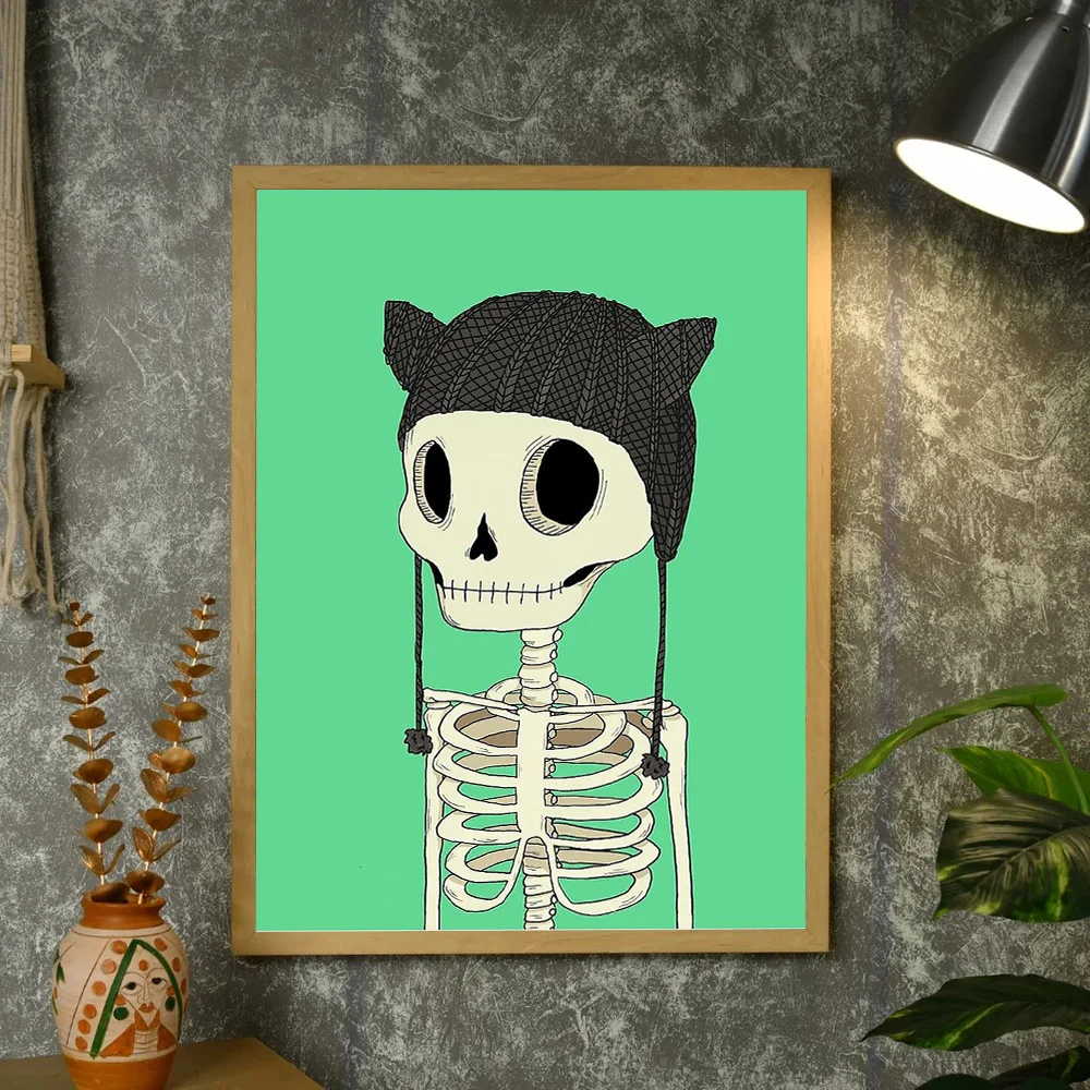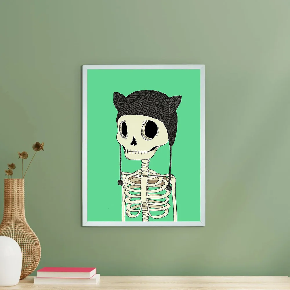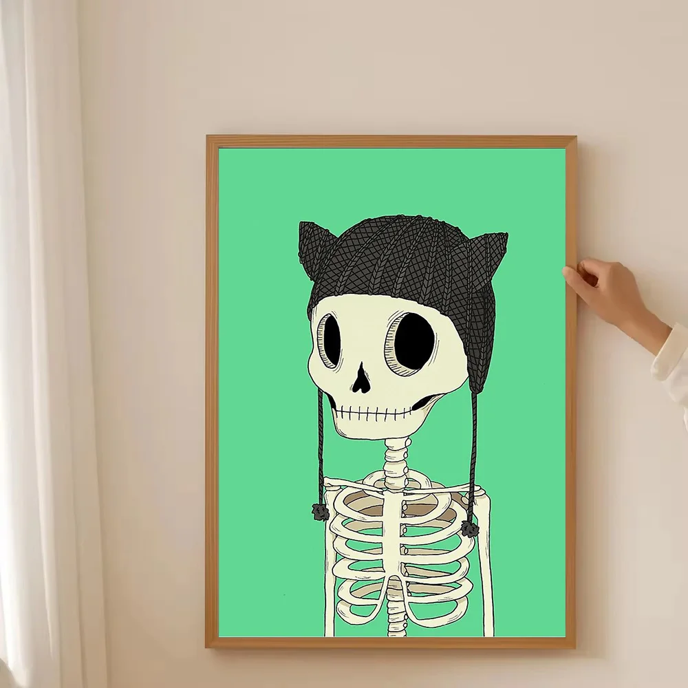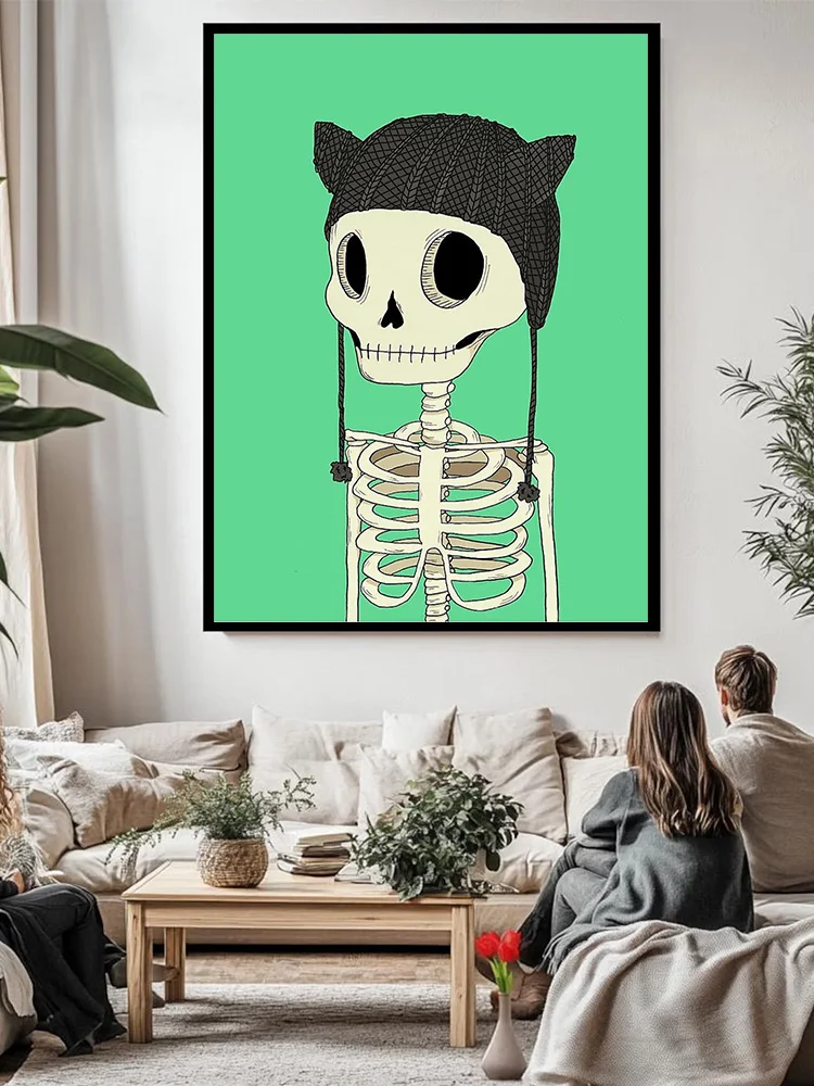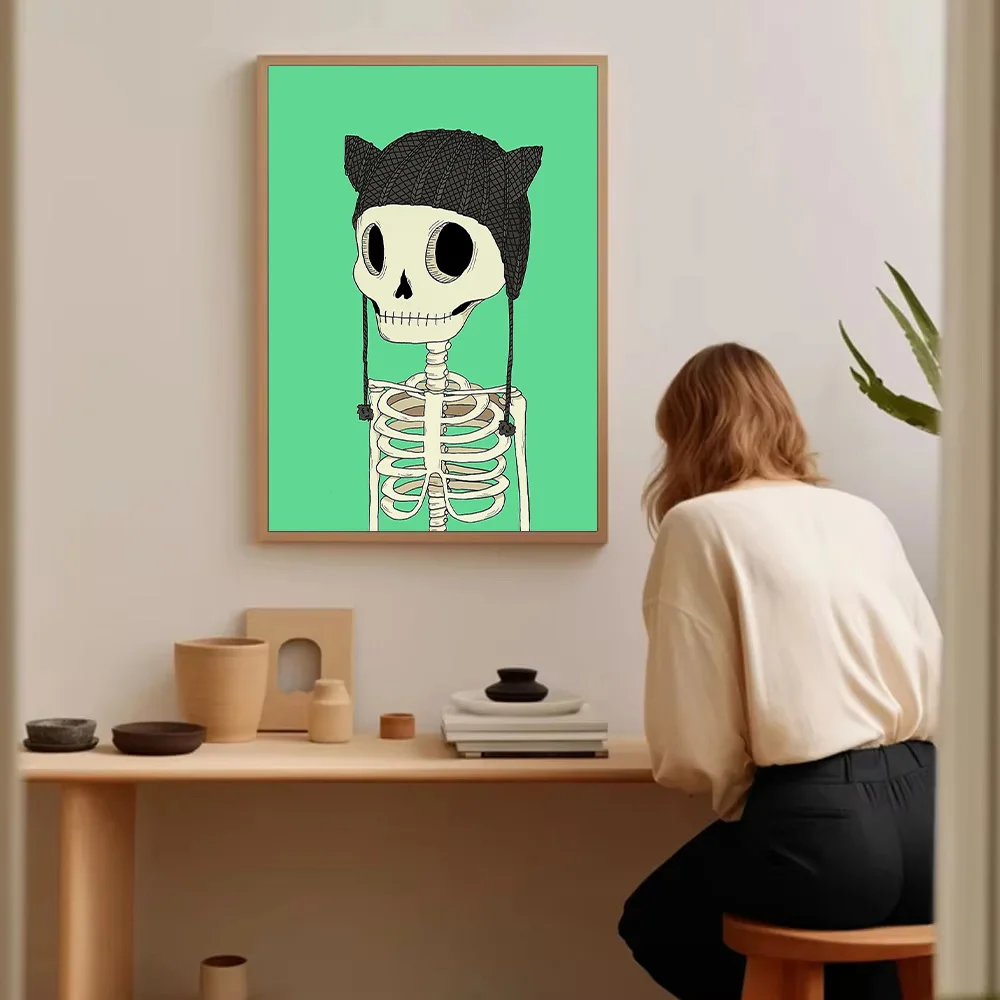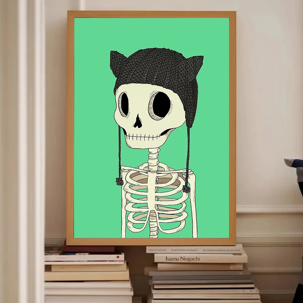 Esqueleto assustador lona arte da parede assustador decoração de halloween gótico horror impressão escuro decoração do quarto casa presente arte única