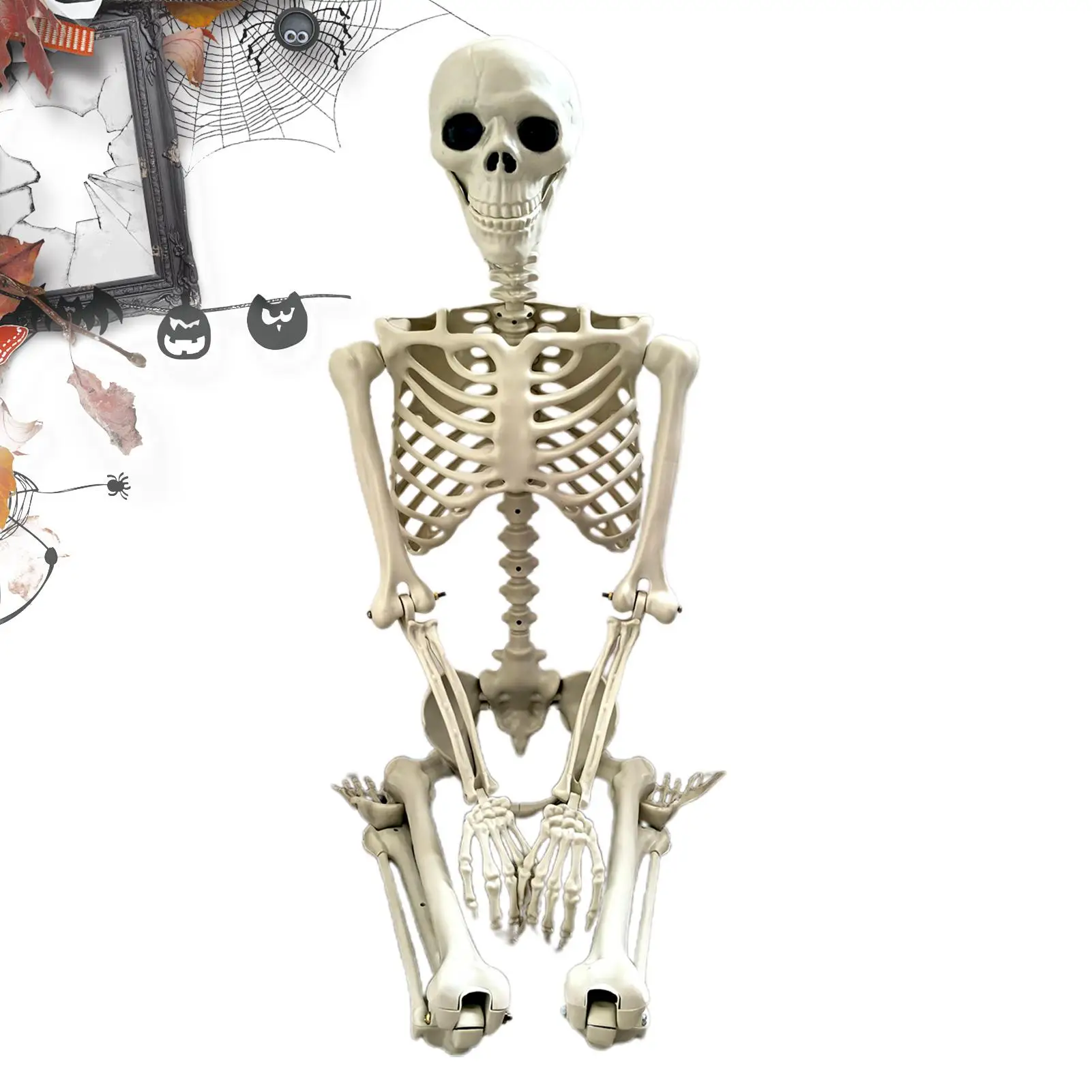- > Esqueleto de halloween em tamanho real, esqueleto humano com articulações posáveis, resistente às intempéries, decoração de jardim, adereços fotográficos assustadores para feriados