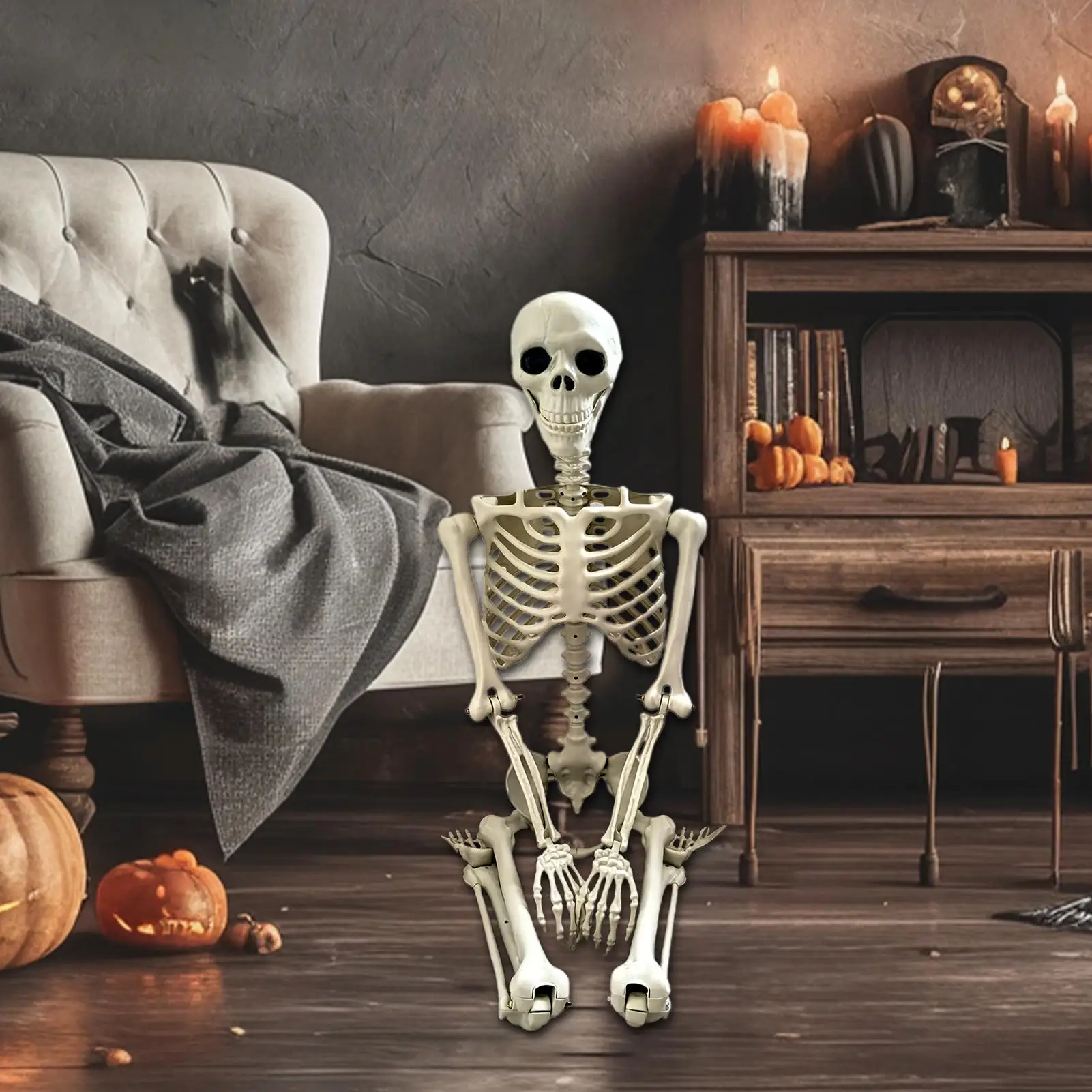 Esqueleto de halloween em tamanho real, esqueleto humano com articulações posáveis, resistente às intempéries, decoração de jardim, adereços fotográficos assustadores para feriados