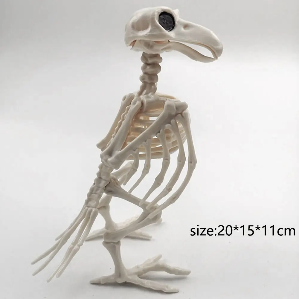 - > Esqueleto de osso louco corvo plástico animal esqueleto ossos horror festa de halloween prop decoração pássaro corvo esqueleto decoração