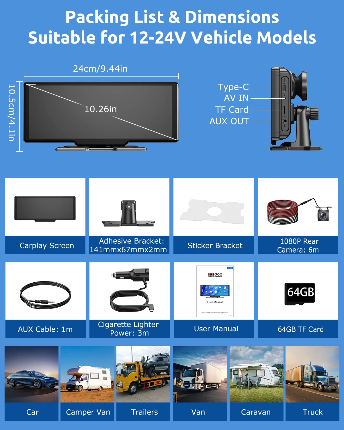 - > Essgoo sem fio carplay carro dvr 4k câmera android auto ai tela traço cam dupla lente gravador de vídeo gps navegação painel