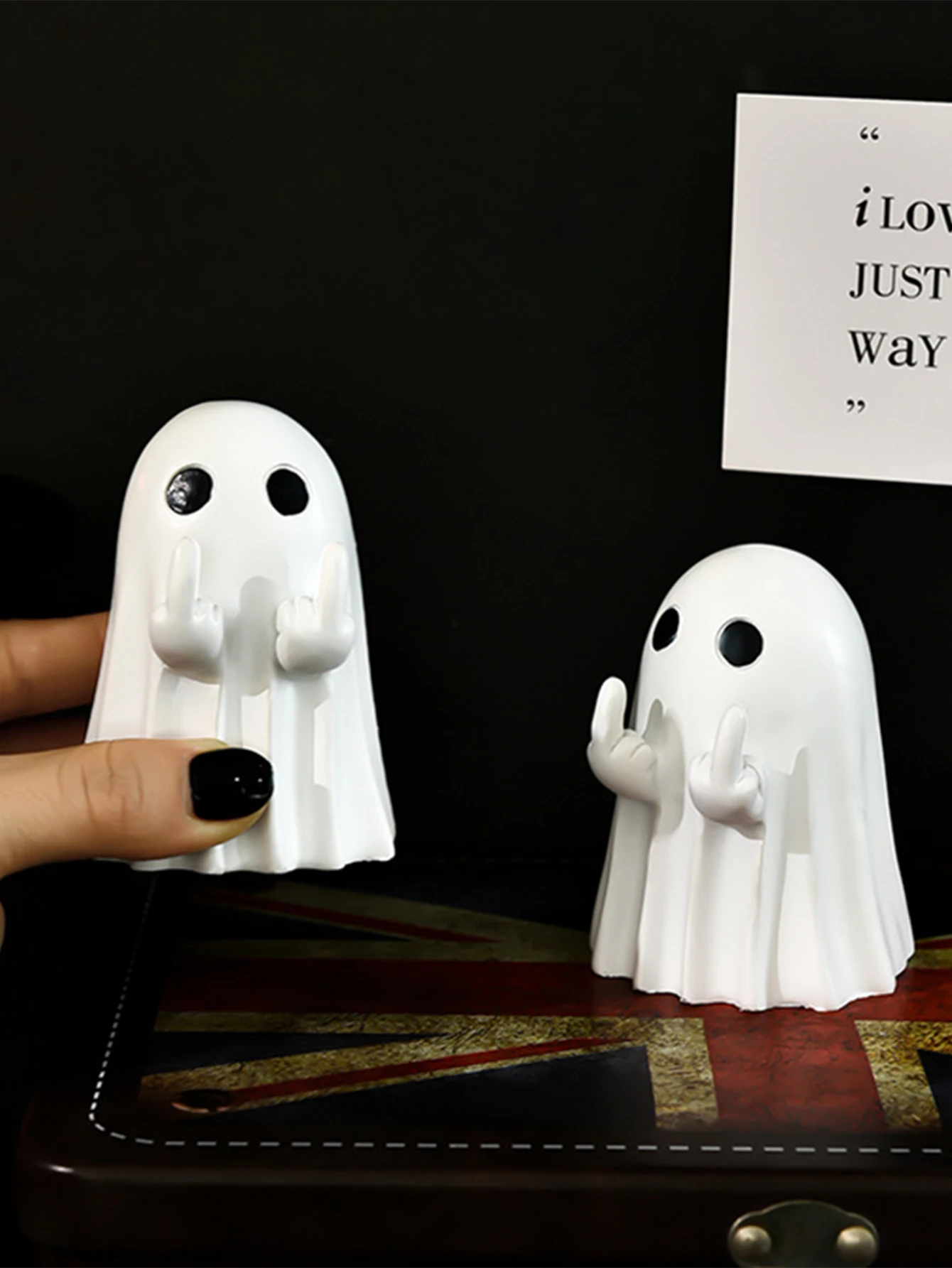 - > Estátua de fantasma fofa de dedo médio, estatuetas de fantasmas pequenas e assustadoras, decorações para casa de Halloween, prateleira de peças centrais de mesa de centro