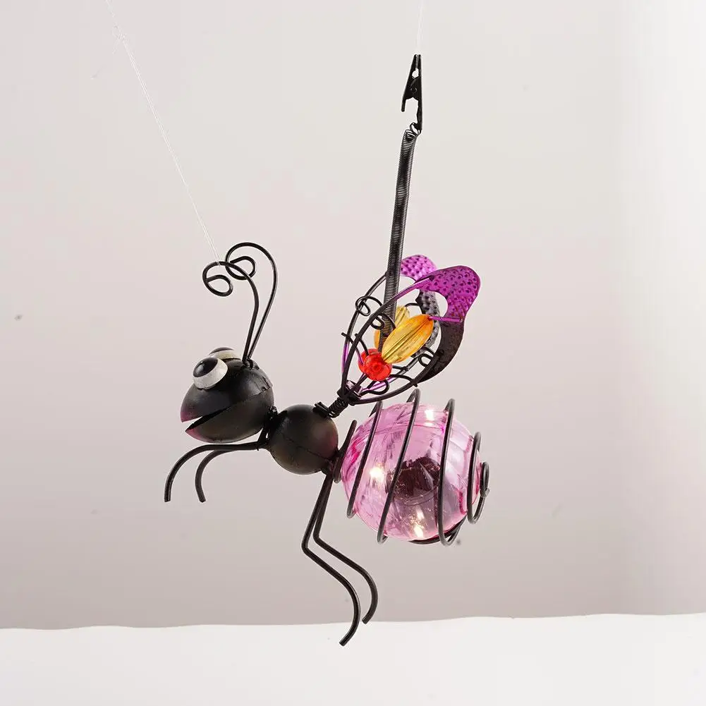 Estátua de inseto de ferro solar com luz de fada led ao ar livre à prova dwaterproof água pendurado ornamento de árvore para cerca quintal jardim arte decoração