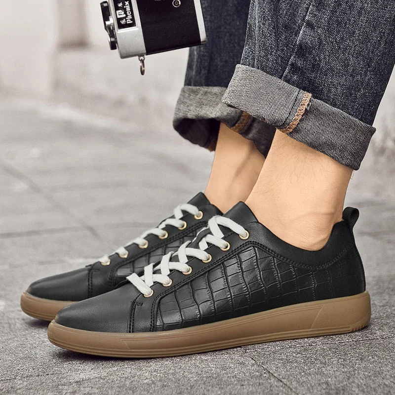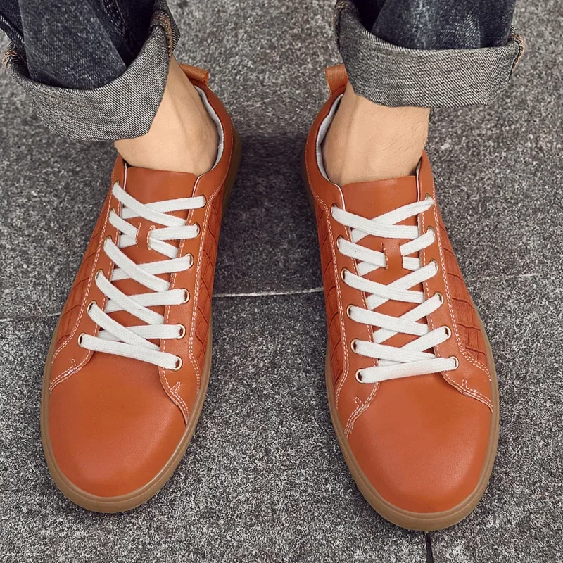 - > Estilo britânico couro genuíno rendas sapatos de placa moda tênis ao ar livre casual couro caminhada oxford sapatos vulcanizados