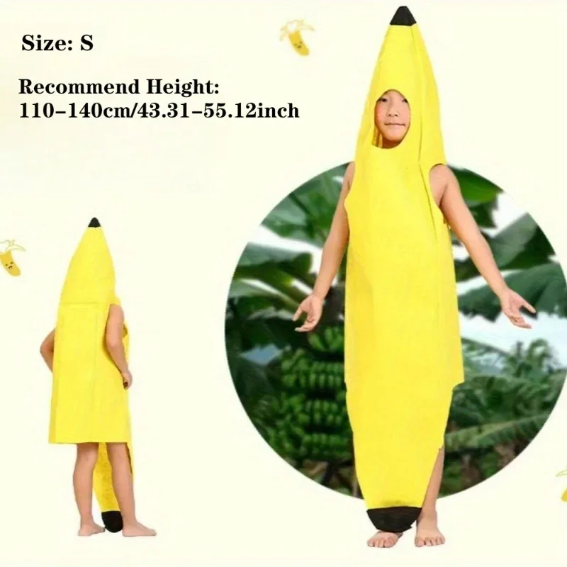 Fantasia de banana para halloween, roupa de frutas, pai-filho, roupas de performance de palco, jardim de infância, decoração de dramatização, 1-5 peças