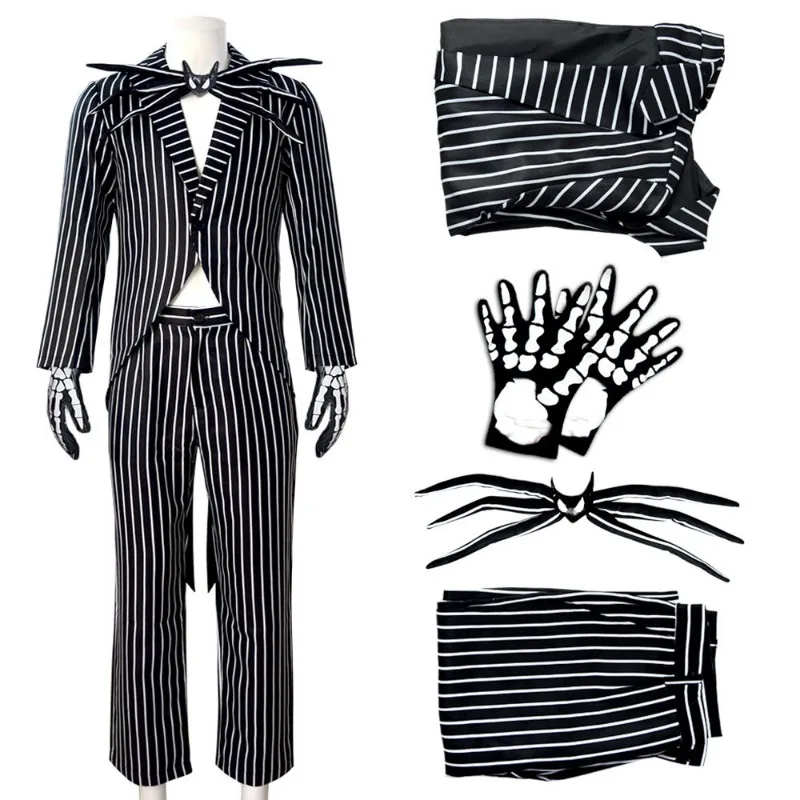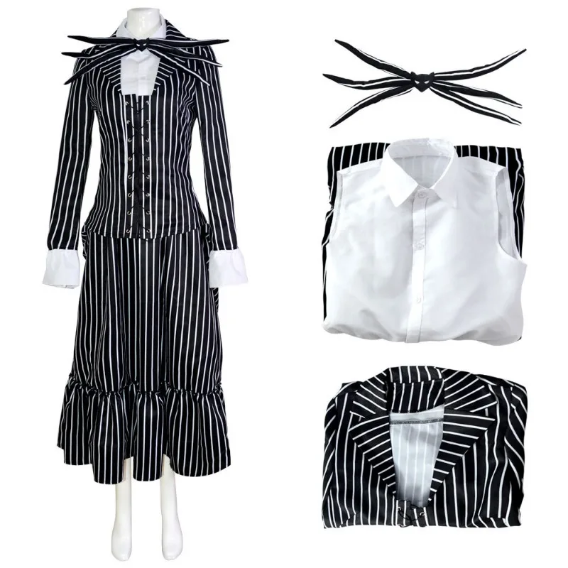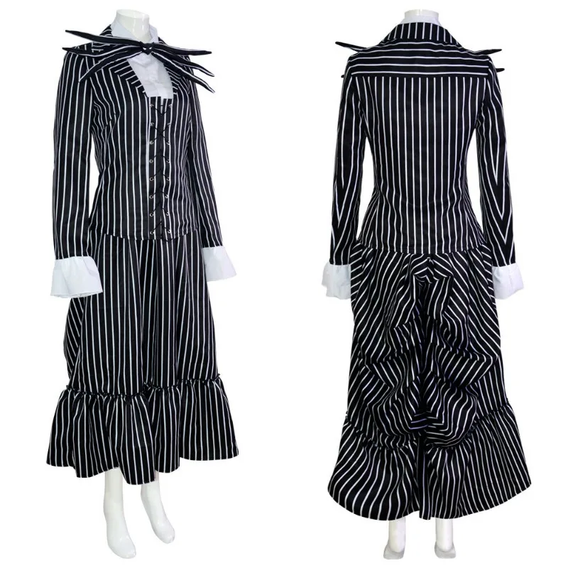 Christmas Eve Costume Jack on Skeleton Men's Women's Full Sally Black and White Stripes Cosplay Costume Halloween