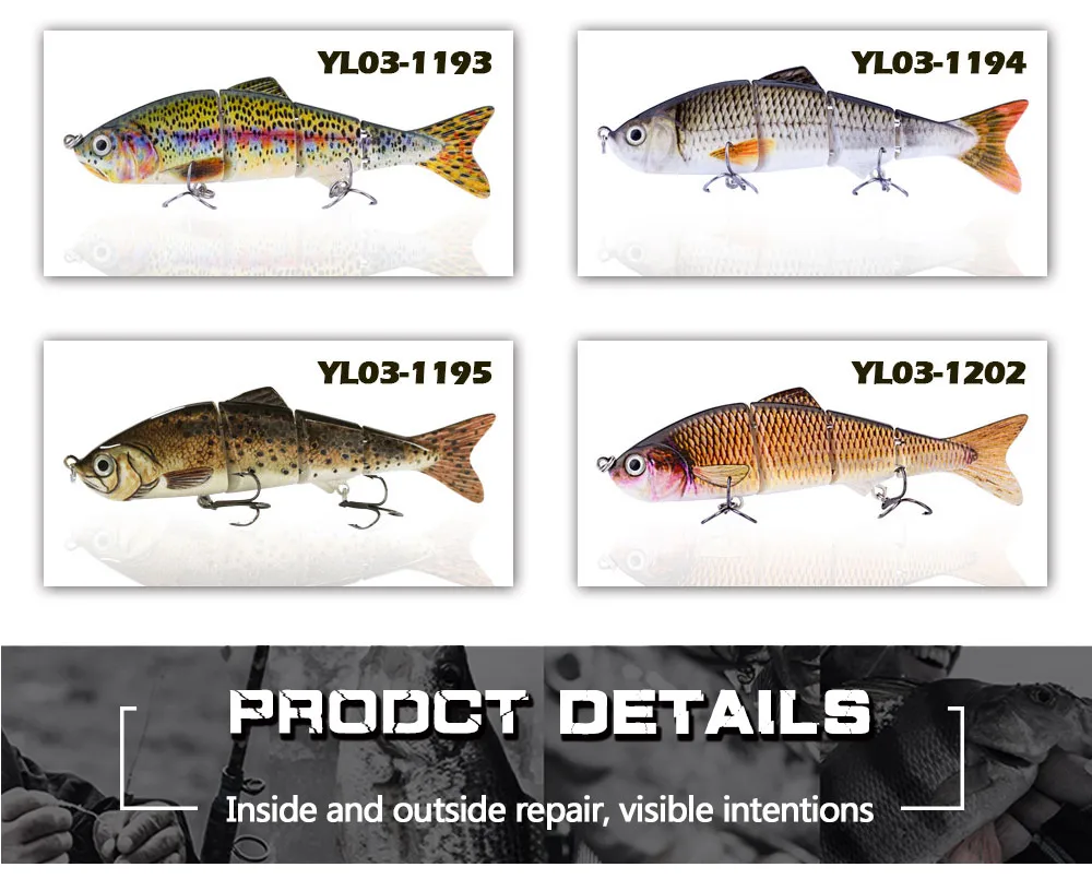 Esta isca dura multi articulada é um dos melhores acessórios em sua caixa de equipamento. Tem aparência realista e pode criar ações de natação semelhantes à vida na água para provocar o predador a morder. Se você é um amante da pesca, pegue esta isca de pesca e aumentará suas capturas e lhe trará mais diversão.